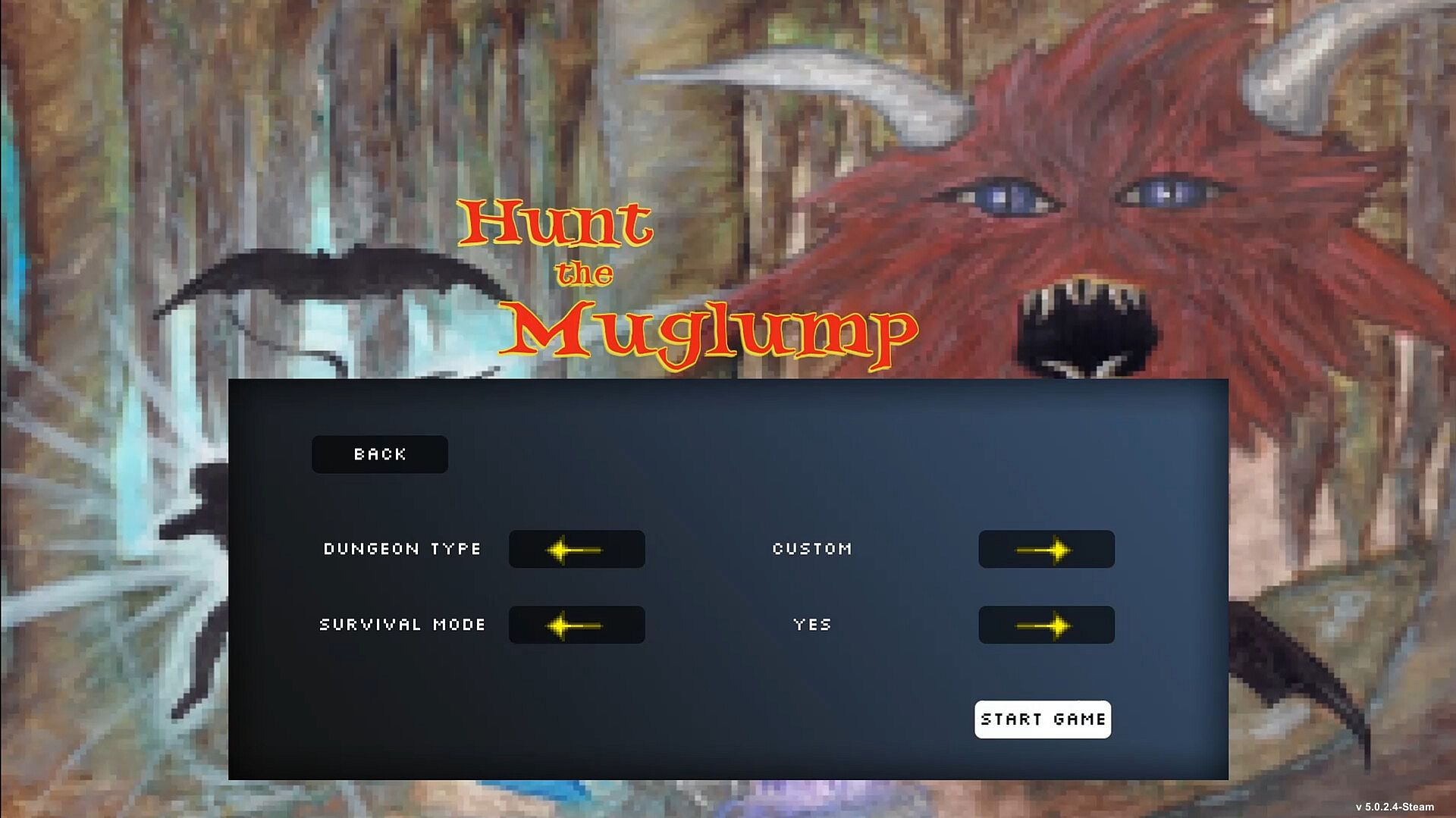 Hunt the Muglump is a retro-inspired dungeon crawling adventure where you must brave the dangers of a dark dungeon in order to slay the Muglump by shooting it with an arrow. The Muglump is a horrific, greedy beast that can and will consume anything and anyone it can get its hands on. Along the way watch out for bottomless pit traps and giant bats that can carry you to other parts of the dungeon that may lead to certain doom. To play the game, players must explore the dungeon. When they enter a room, they will receive on screen messages indicating if danger is close. Using these clues, they must determine if one of the nearby rooms contains a muglump and fire an arrow into it, slaying the beast. After slaying all muglumps in the dungeon, players should return to the entrance to successfully complete the game.