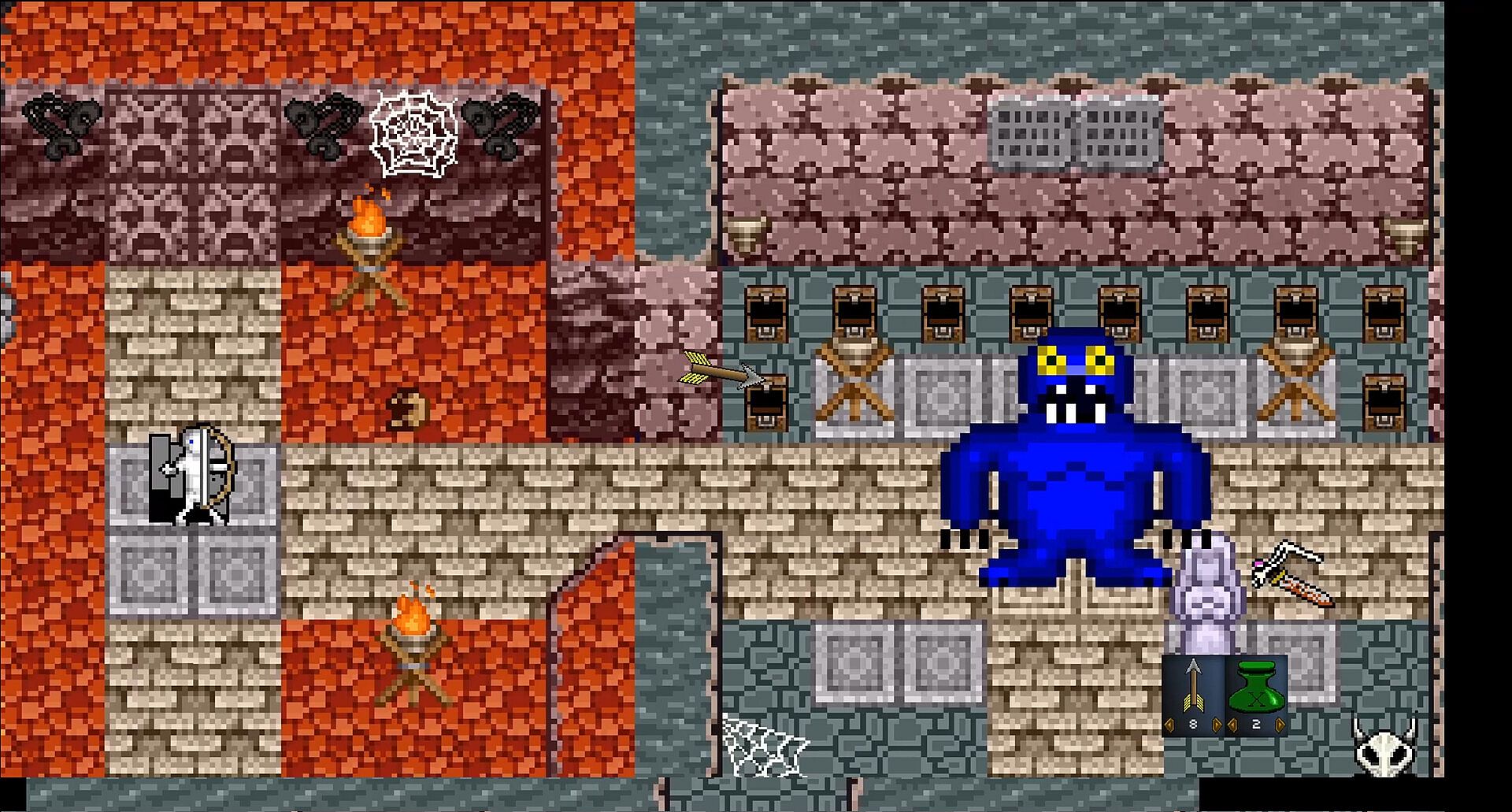 Brave dark dungeons in this retro-inspired indie adventure, slaying the greedy Muglump beast by firing arrows into its lair. Explore room by room, reading on-screen clues to spot nearby dangers like bottomless pits and giant bats that snatch you to deadly spots. Clear every Muglump to reach the entrance and win. Randomized maps ensure fresh layouts each time, while Custom Mode lets you tweak the generation dials for unique challenges. Retro soundtrack pulses through every run. Fans of dungeon crawling and procedural exploration will keep coming back for more.