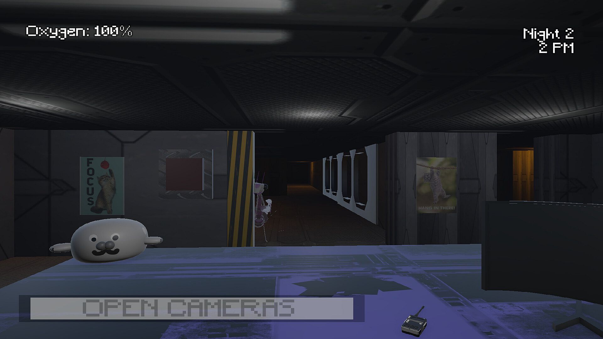 Using your cameras, you can track the location of everything in the ship. Should something get too close, it's up to you to protect yourself. This includes closing doors, shutting vents, and sounding alarms to scare them away. While you can't