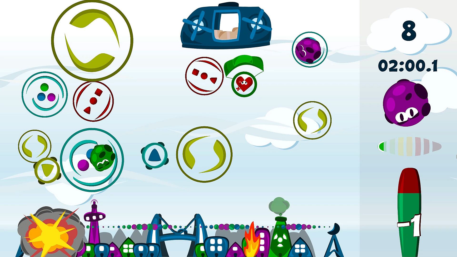 Meteorites will come from the sky to destroy the city. Your goal is to create bubbles to transform them into the pattern given by your weapon.