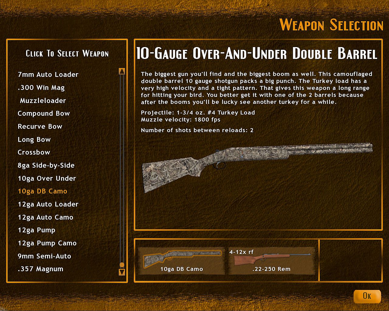 • Choose from 32+ weapons and accessories. Compound Bows, Shotguns and Rifles - Decoys, Blinds, Bait, and more.
