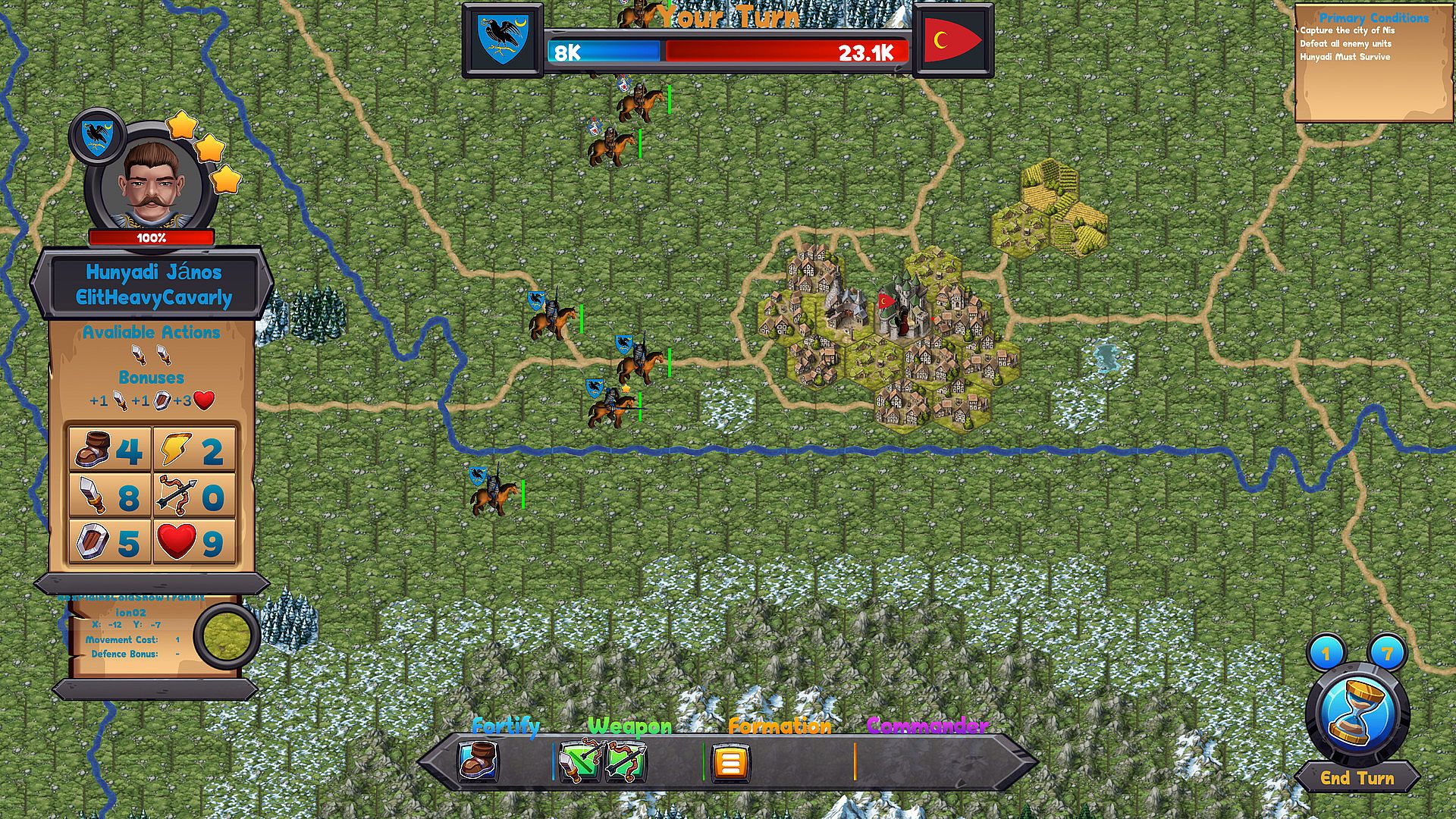 We are able to Fortify units. Moral and damage system were rebalanced. Battle events got introduced So units can get effects (panicked, fortified, encouraged) in certain turns or depending on large loss or loss of a VIP unit. AI also capable give commands for groups of units (hold, attack)