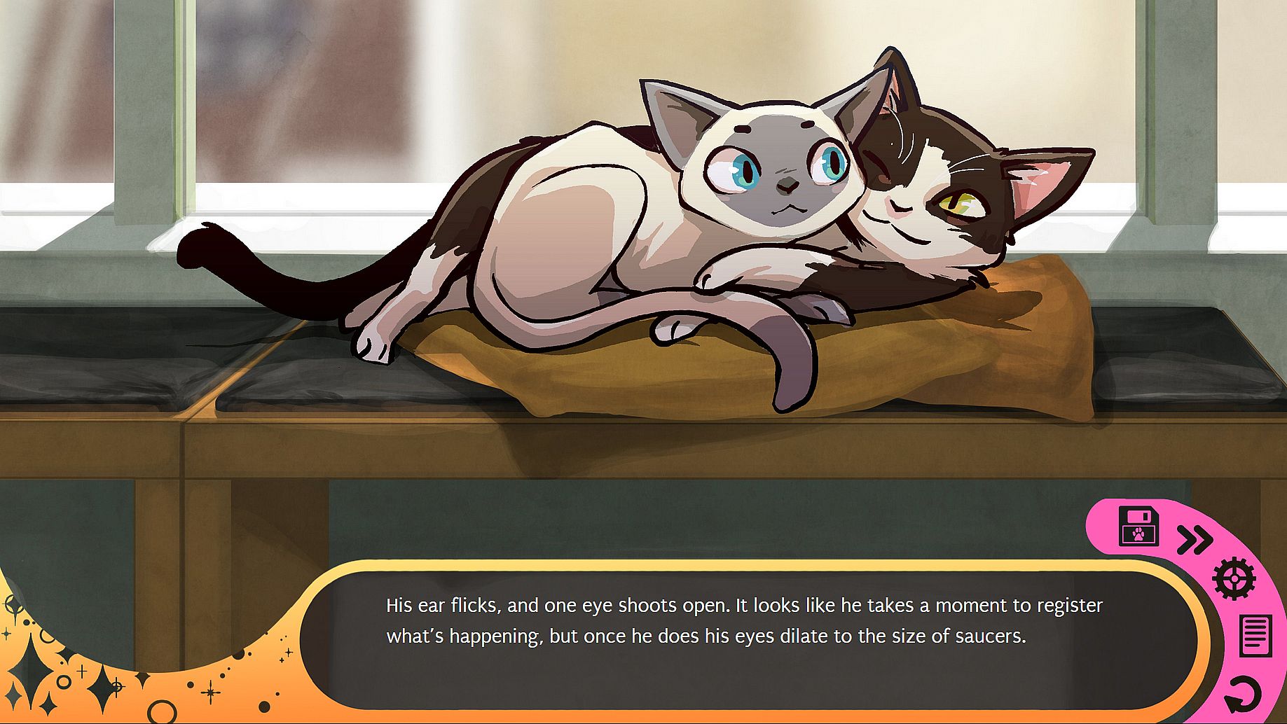 You are Avery Grey, the newest employee at a popular cat cafe called A Cat's Paw. The coffee's good and the staff is friendly (and kinda cute!) but mysterious. One day, you find a strange book in the basement, with letters you can't quite read...