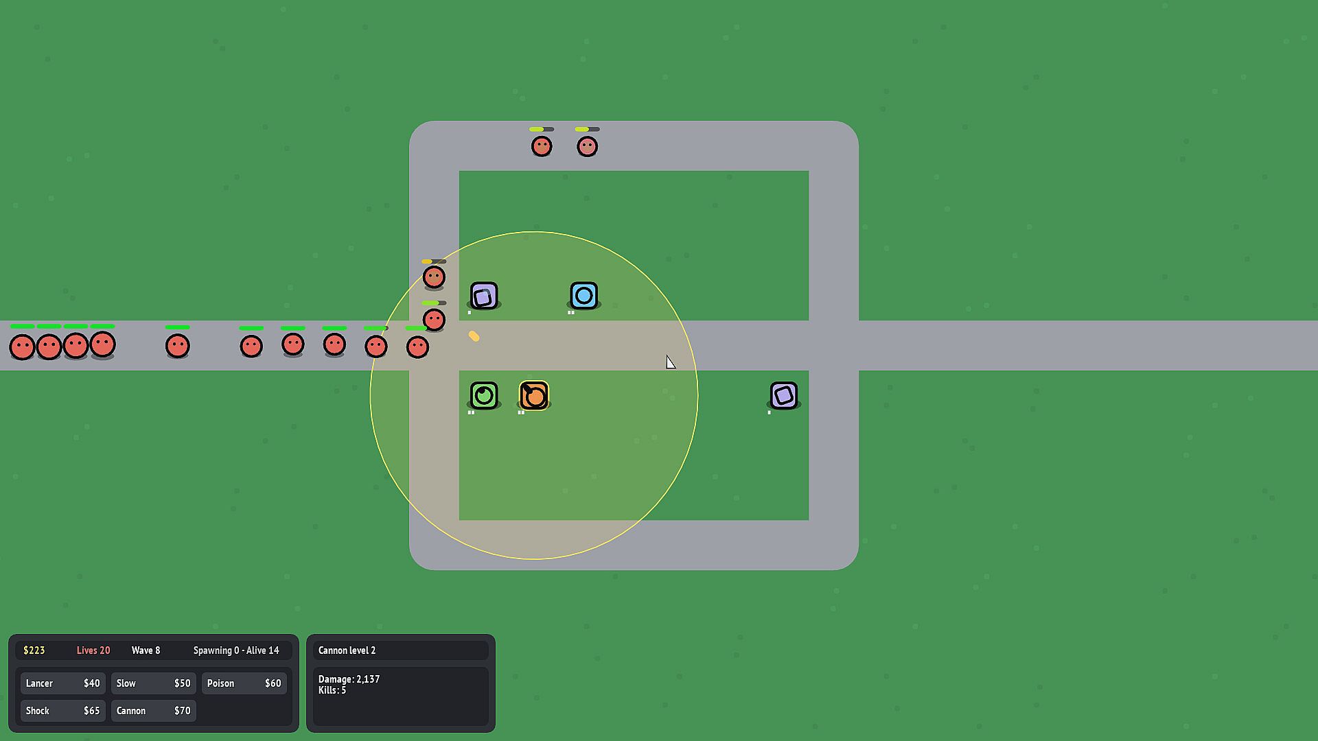 Place towers along the path, upgrade them over time, and stop enemy waves from reaching the end. Each tower has a clear role.