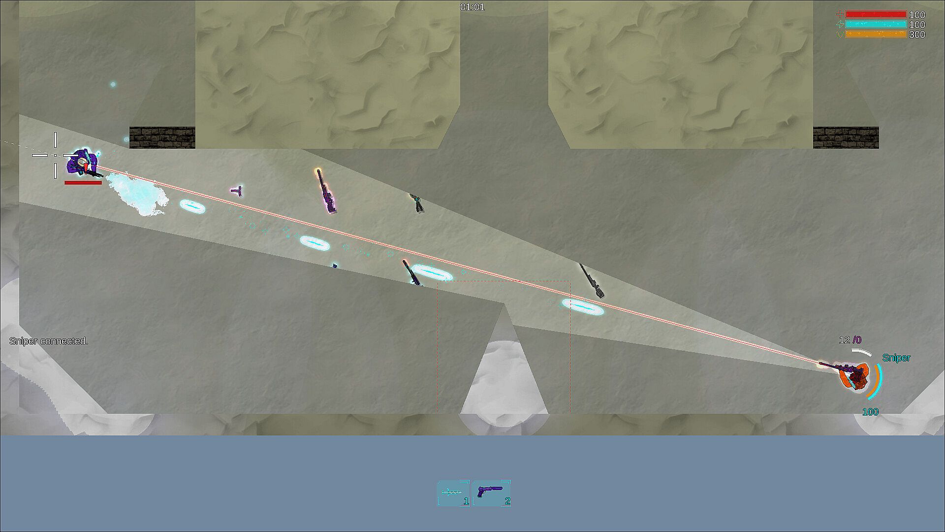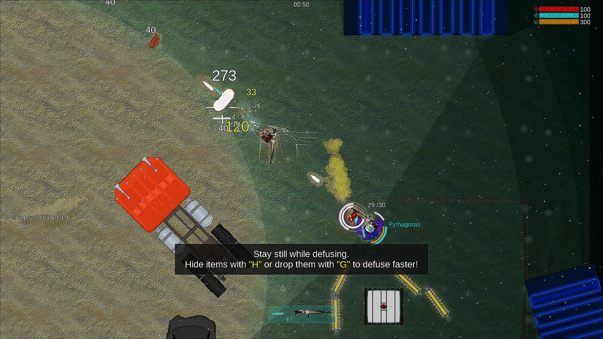 • 2 game modes: Bomb defusal (team-based) and Gun game (free-for all).