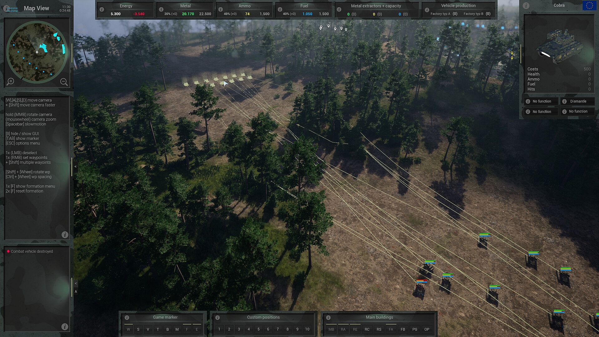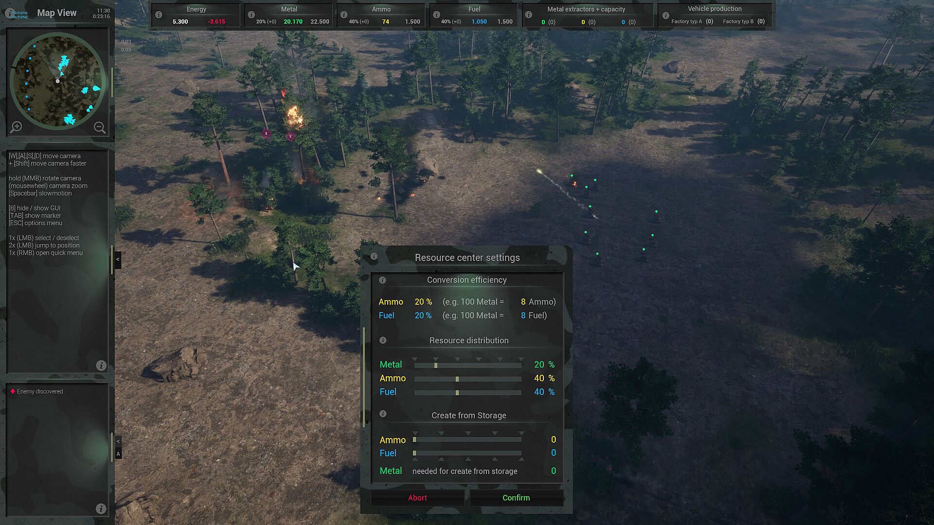 It should be noted at this point that due to the high dynamics, every mission start in skirmish mode, even with the exact same settings, leads to completely different outcomes.