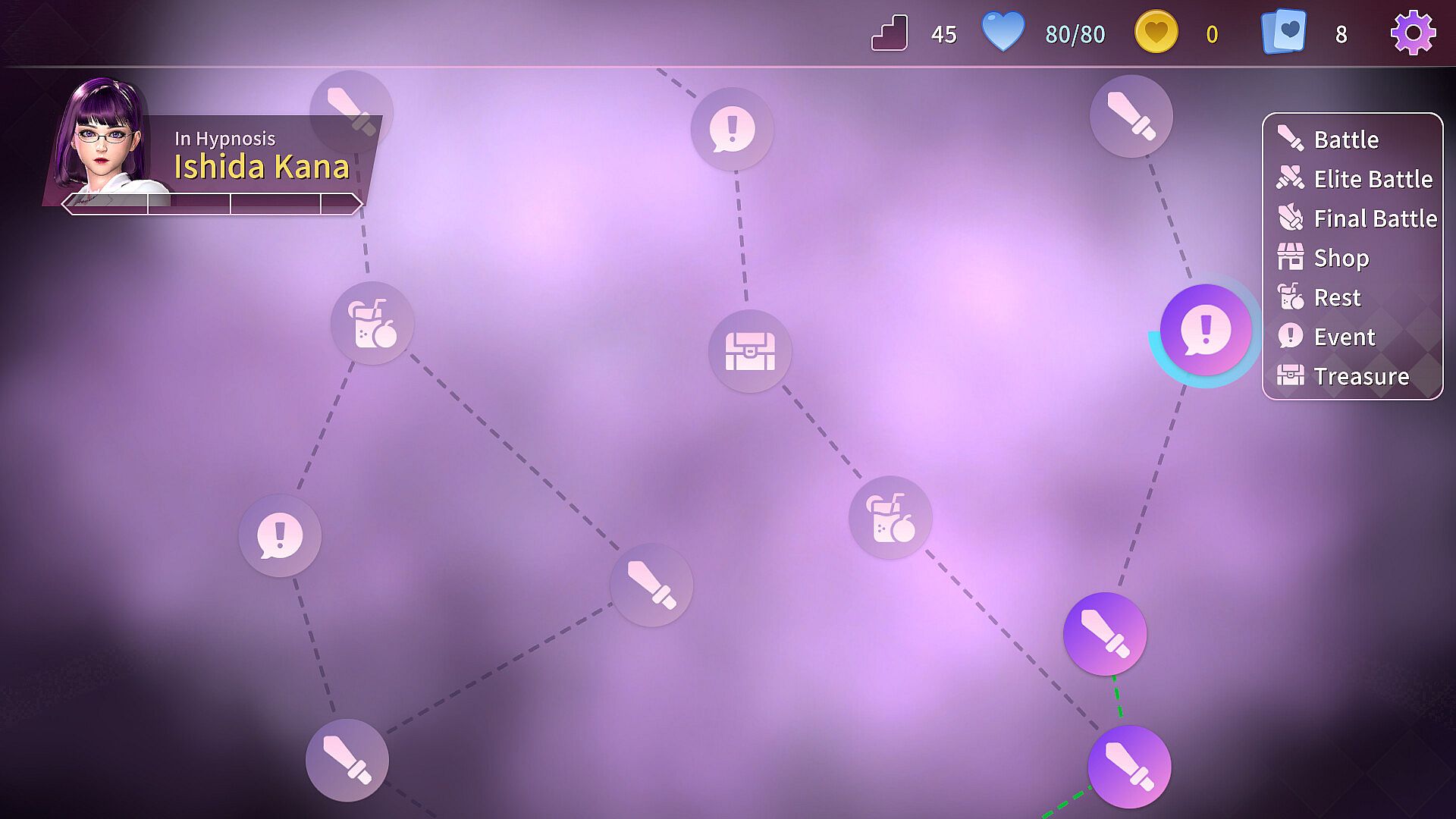 Players build decks in randomly generated maps and use cards to battle against girls. Use different cards to select different parts of the girl and deal damage.