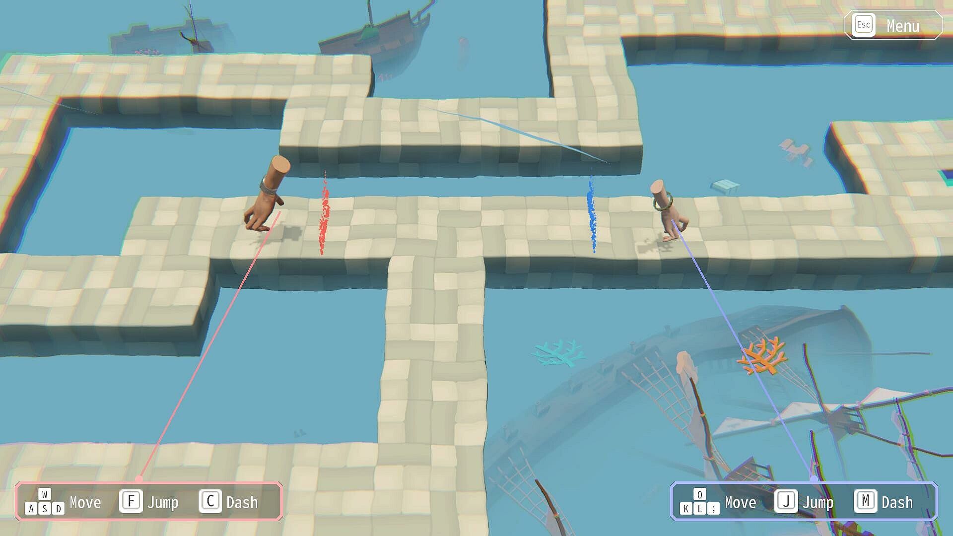 While the game is primitive, controlling two characters independently with separate hands may cause significant stress to participants. Please do not continue the experiment if you find it too stressful, and take breaks as needed.