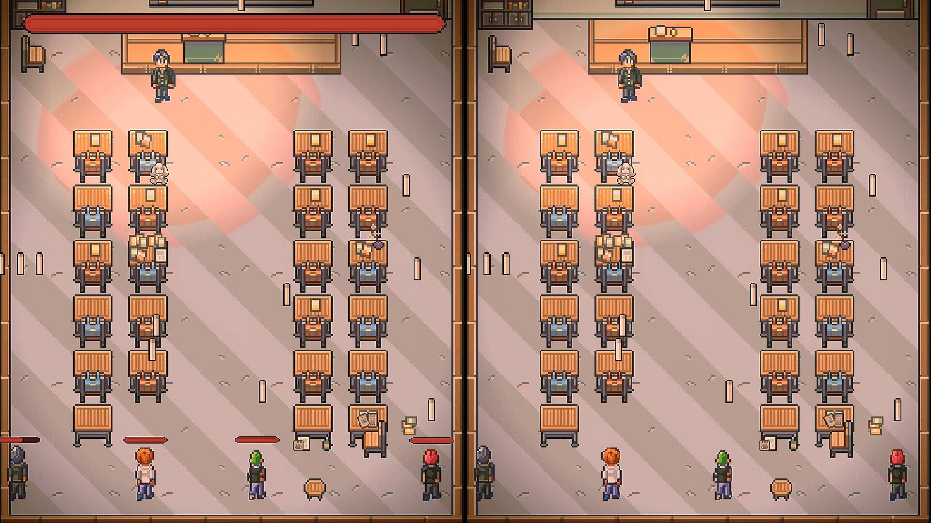 *When you throw chalk at your classmates in the classroom, you will enter the shooting game