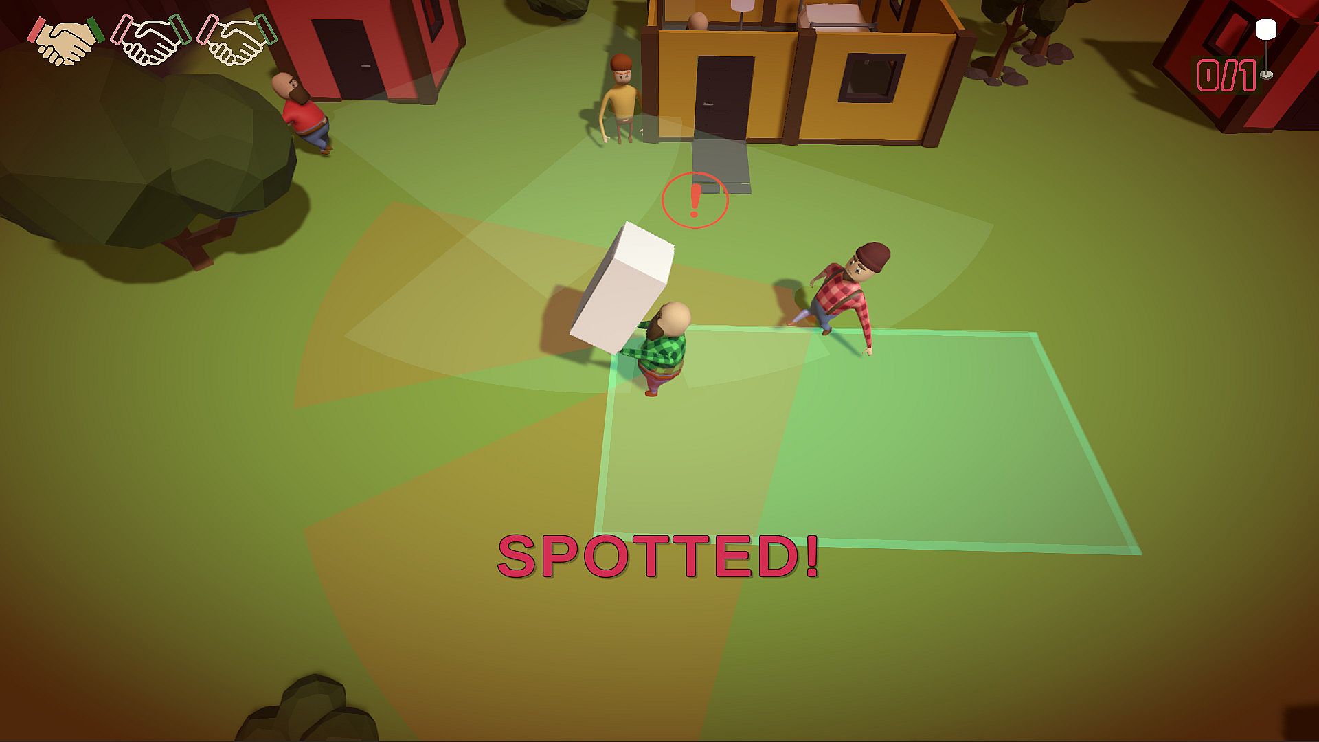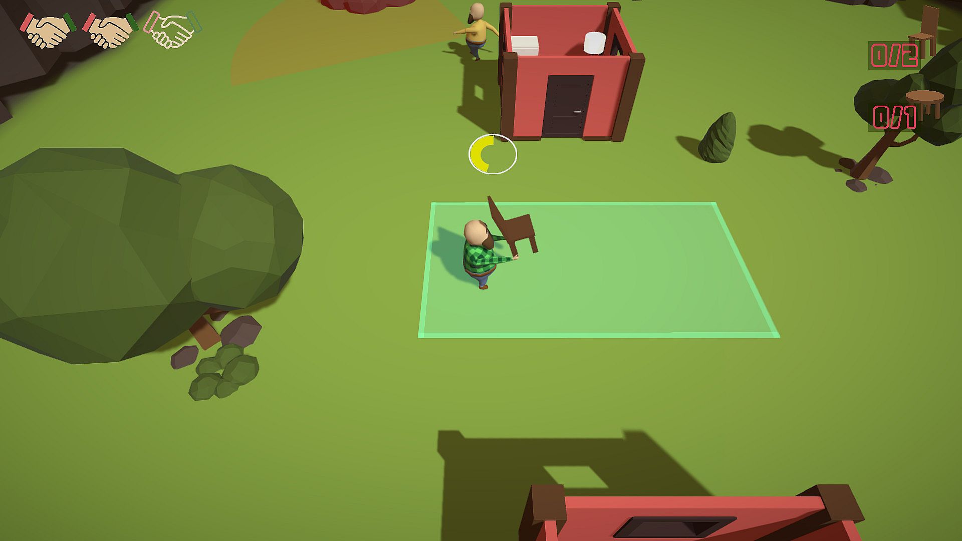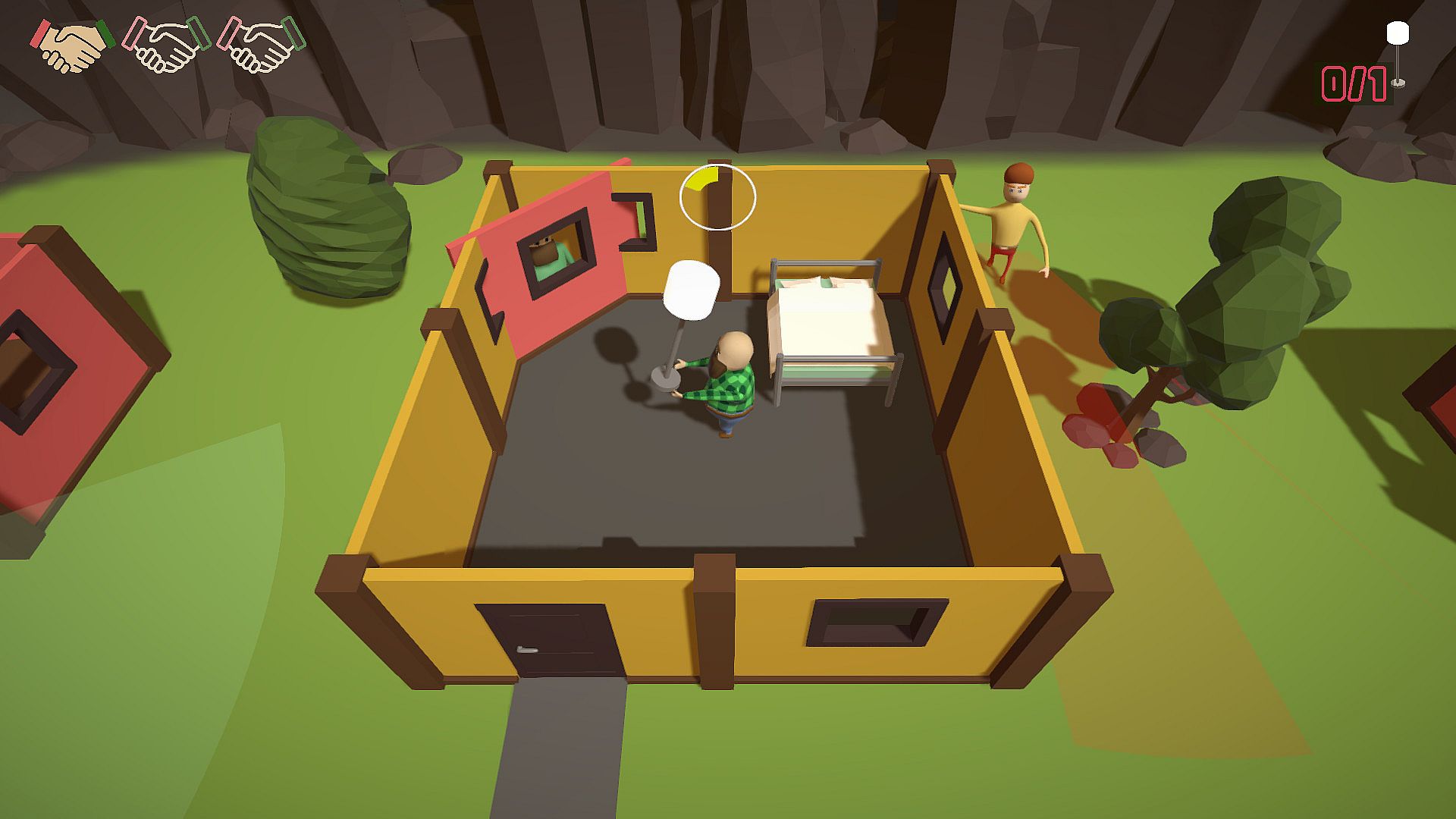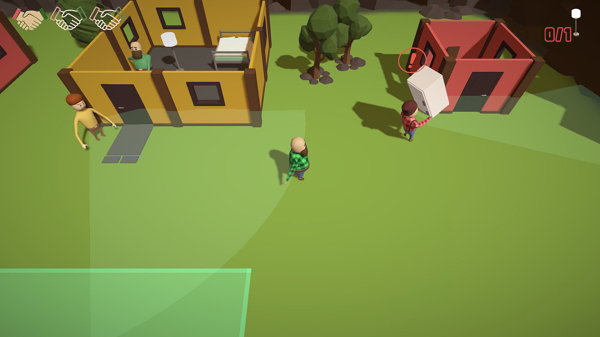 Pick up required objects and take them home without being noticed. If you are noticed you will lose trust and the owner will take back his stuff. Once you run out of trust points, you have failed the level. When you bring objects home, you can complete given objectives, for example collecting 3 chairs or building a house out of 4 walls.Features: