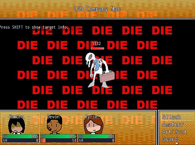 I HATE YOU PLEASE SUFFER is a standard turn-based RPG experience with some experimental things. Each party member distinguishes themself with a gimmick to keep things fresh, like Ramona risking some of her hard earned money to do moves, or Devon having to build up focus to use his magic attacks. There's enemy scaling, especially for bosses, so you can't just brute force your way through things!