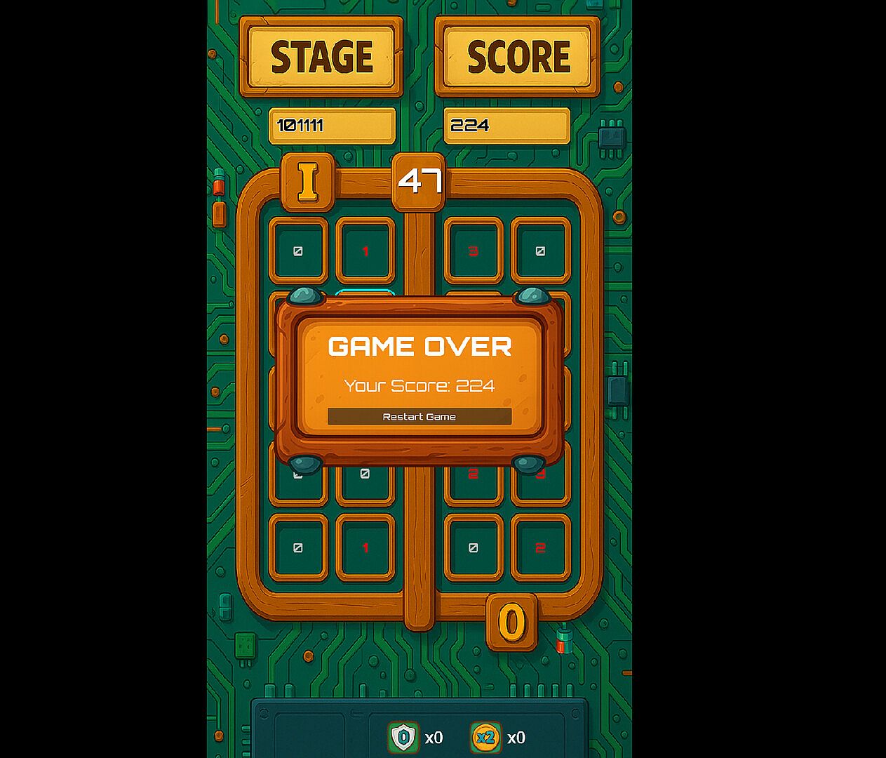 Each run presents a fresh grid and unique challenge. Think ahead, redistribute cell values, and use your limited powers wisely. Every 5 stages, you’ll enter Split Mode — a tactical break where you can transfer half the value of one cell into another, giving you a chance to balance the board and extend your life.