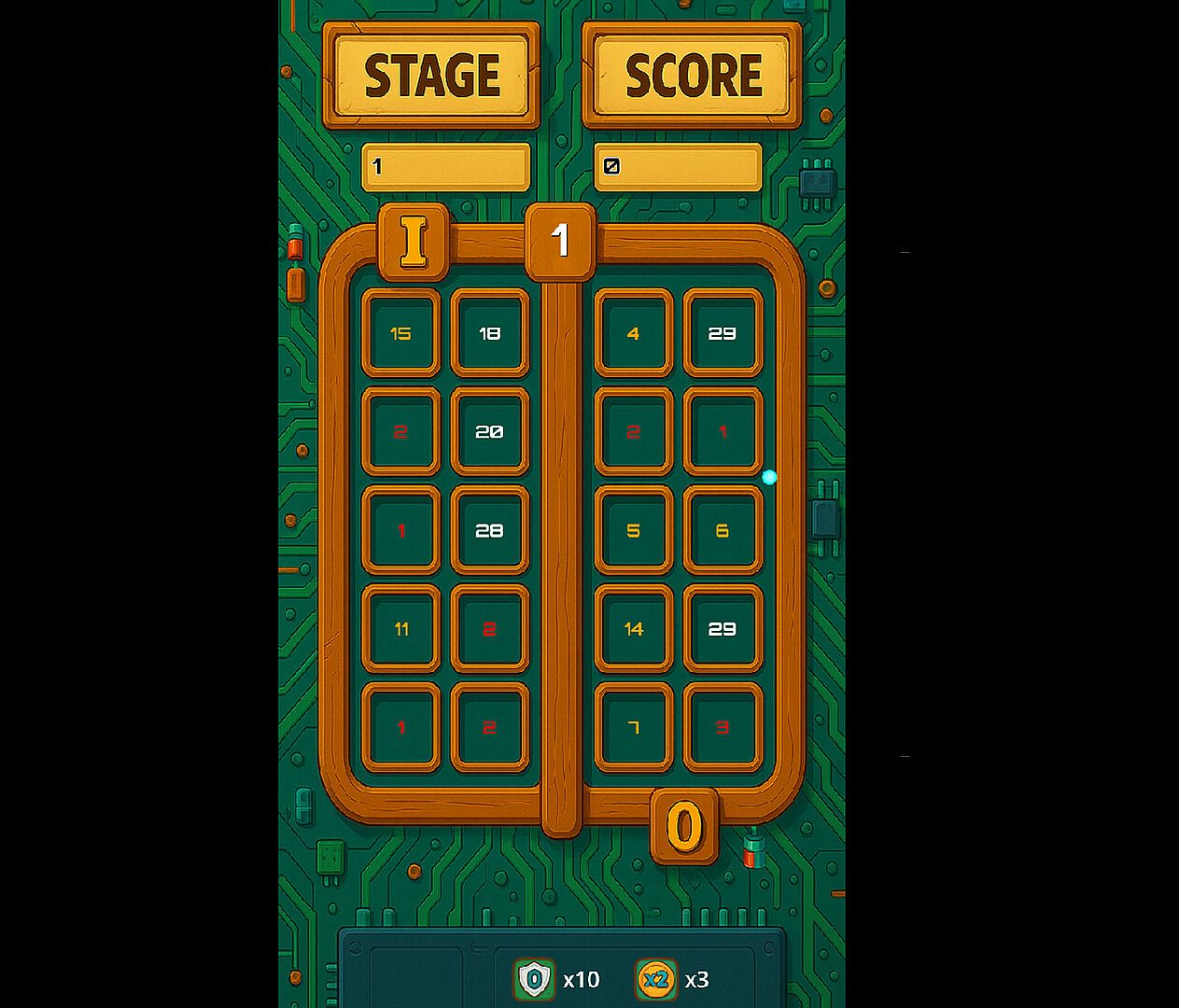 At its core, I/O is about survival. You bounce between two platforms filled with numbered cells. Each bounce reduces a cell’s value — and if you ever land on a cell showing zero, it’s game over. Unless… you’ve got a power to save you.