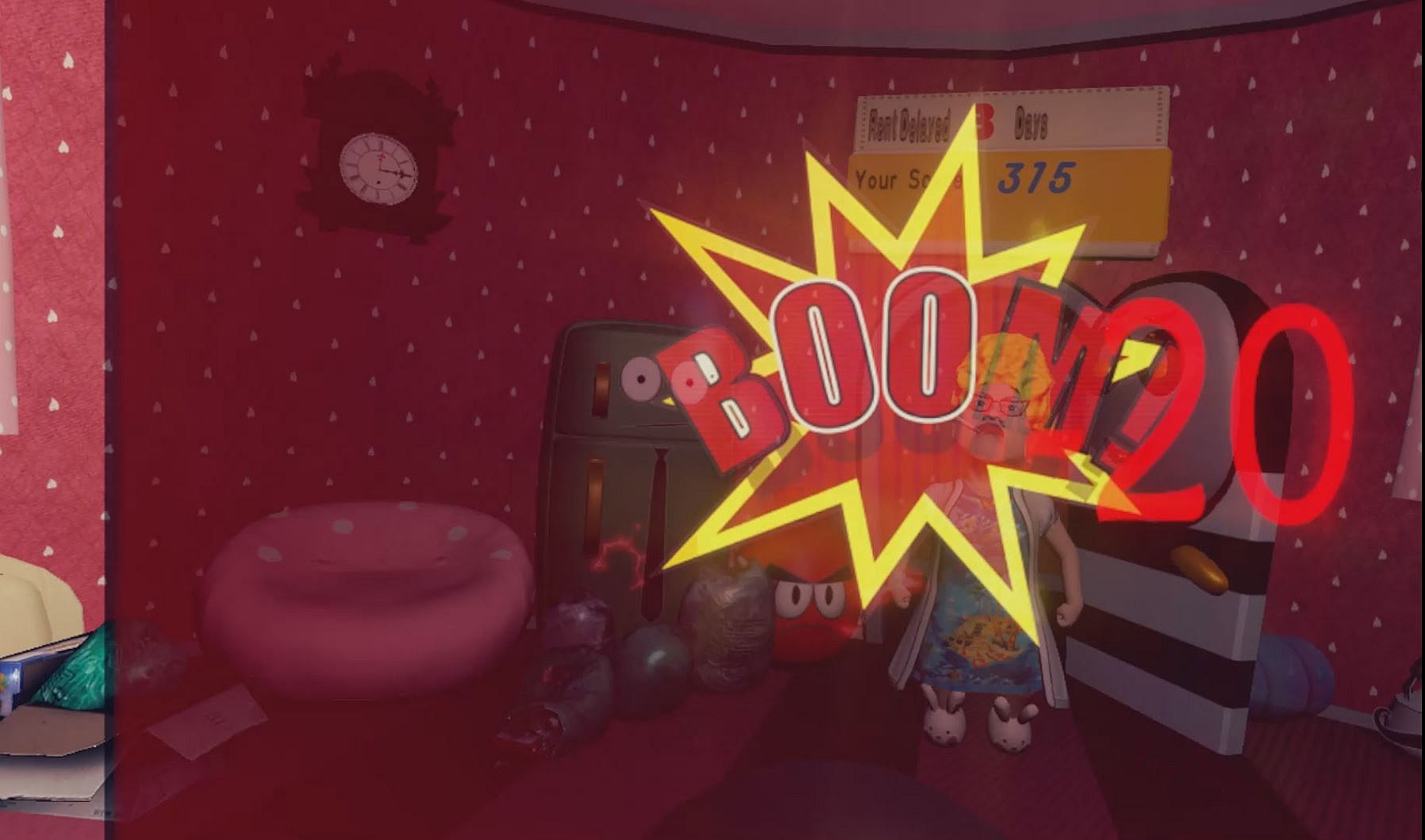 Don't let your landlord overpower you with her incredible throwing power, dodge or block those shoes, bottles, and... wait what? bombs?...Try to block, or dodge all the 'things' your landlord ruthlessly thrown at you!