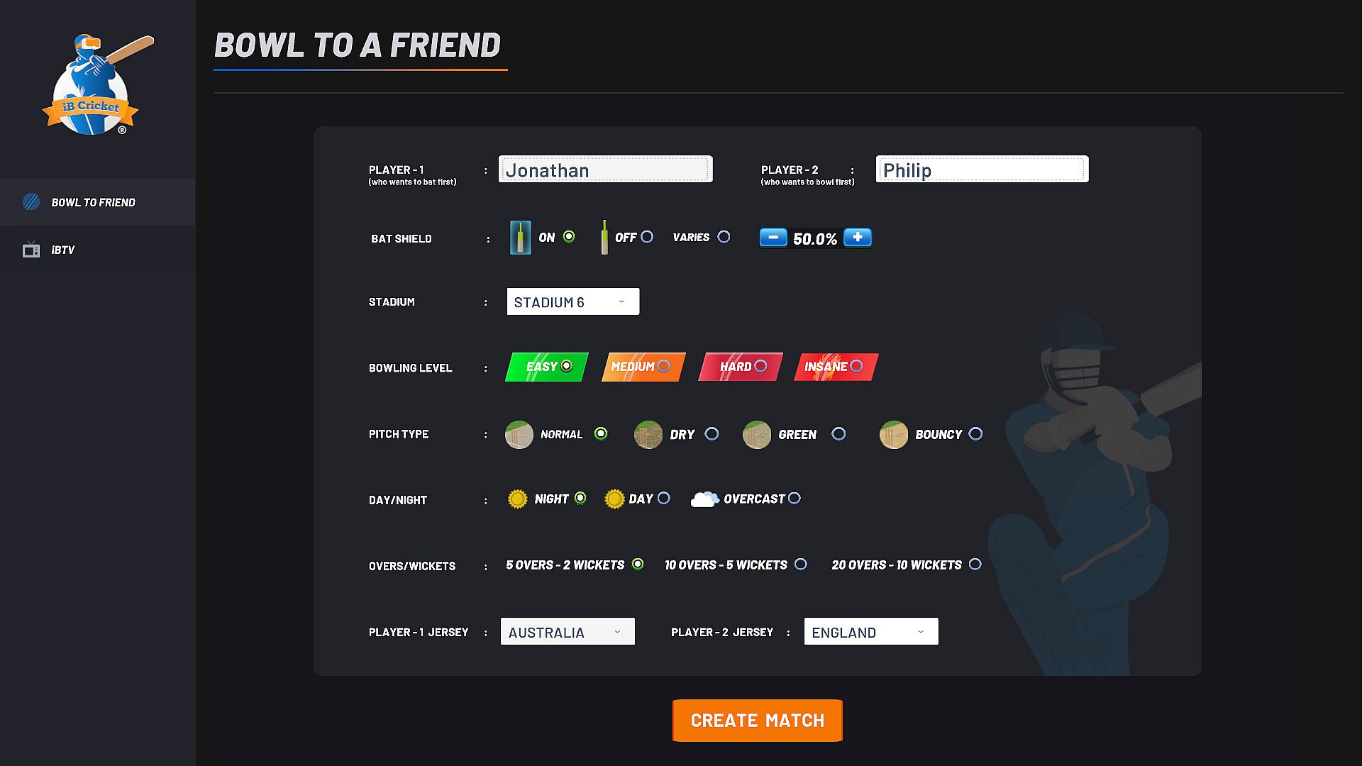- Choose the stadium, pitch, country jersey, day/night/overcast conditions, bowling level etc. right from your desktop and start the PvP match.