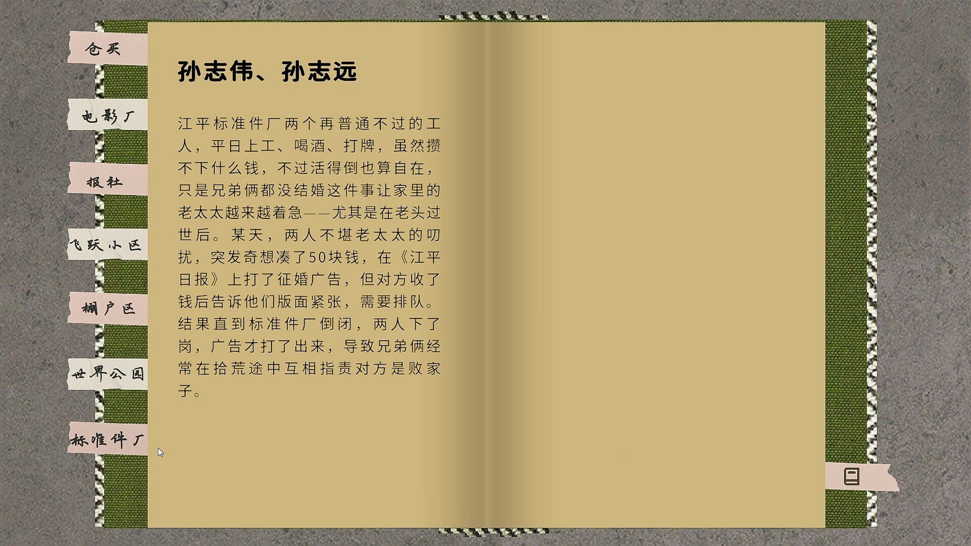 There are many characters in Jiangping, each with their own unique backstories, and numerous interactive elements, they provide a rich narrative experience with multiple branches together. While searching for clues about Dun’s mother, you can slow down and listen to other characters’ story.