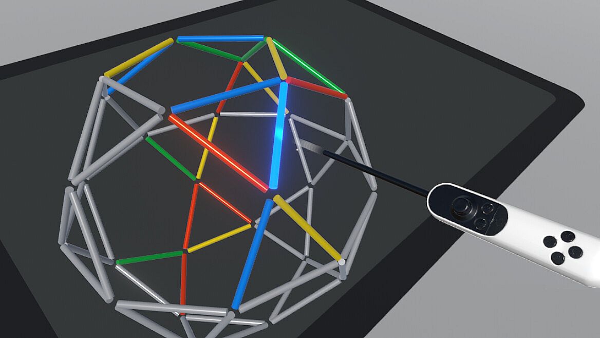 This minimalist puzzle game is as much a game of logic as it is of patience. The objective of each puzzle is to swap pairs of colored rods such that all four rods that meet in any of 30 corners have different colors - a problem known as "edge coloring" in mathematics. The catch is to solve each puzzle with a limited number of swaps (unless you deactivate that limit).