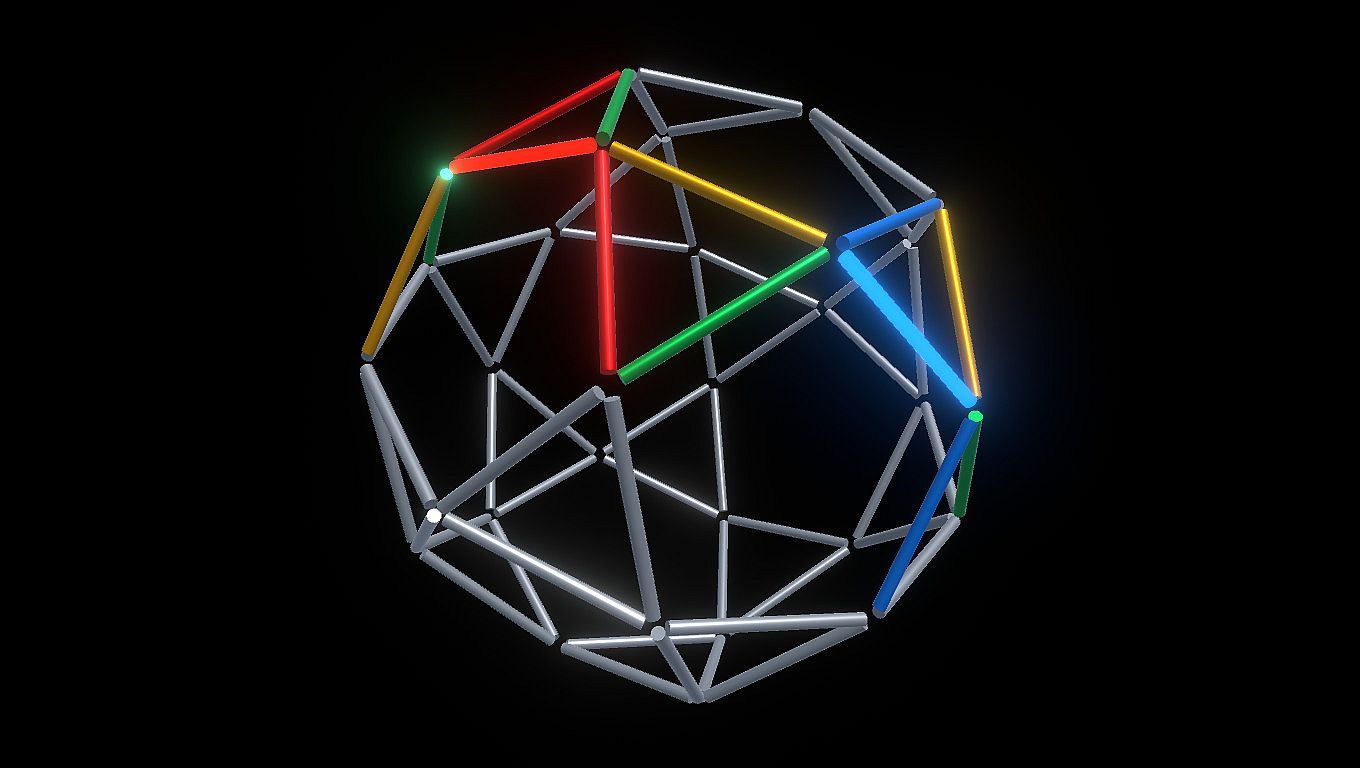 Inspired by a fictional game of a popular sci-fi TV series, the puzzle design combines a mathematical problem (edge coloring an icosidodecahedral graph) with a comfortable learning curve and extra challenging modes for the most devoted fans.