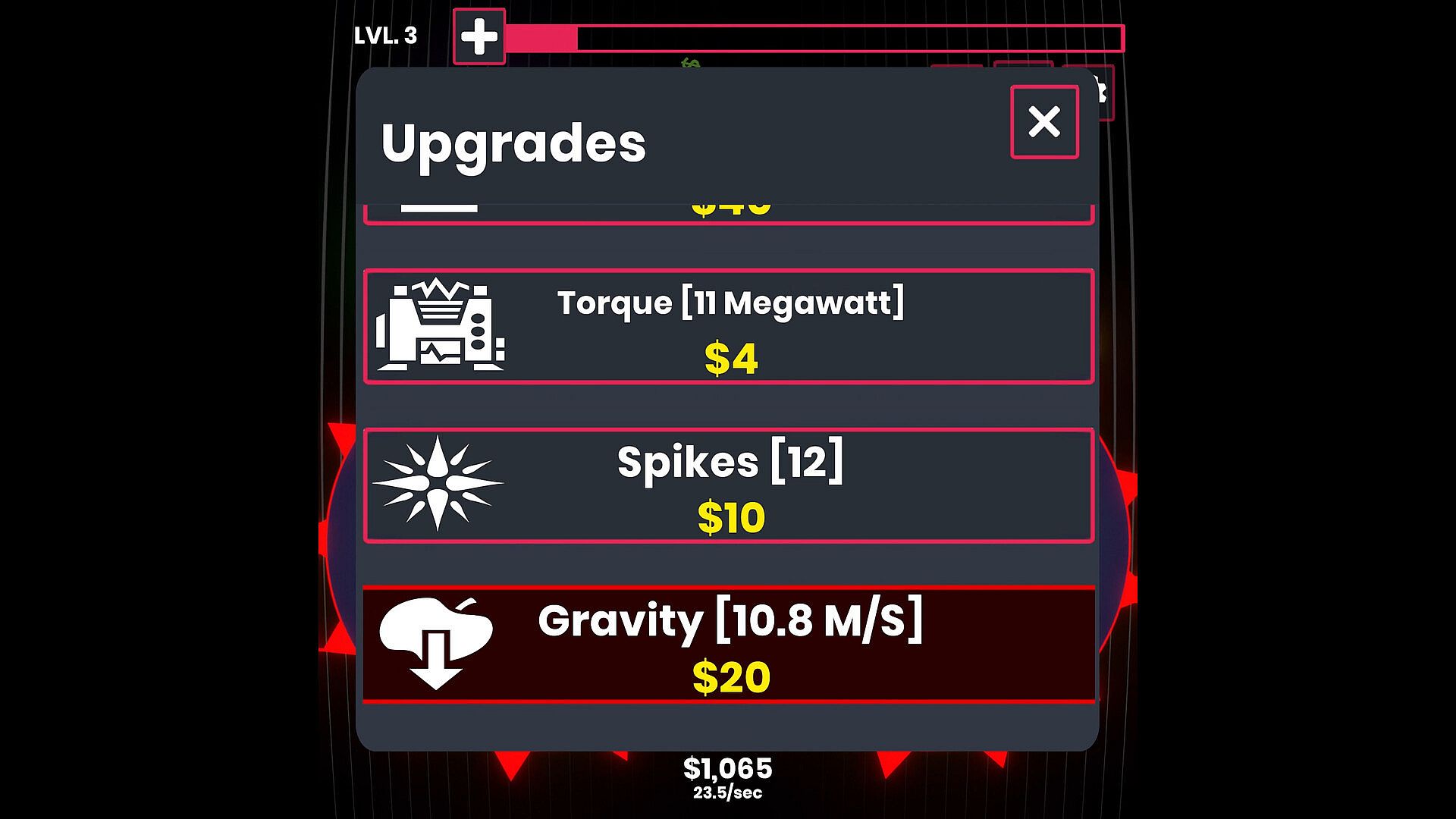 Earn money, level up your gears, and unlock permanent power boosts that speed up your crushing production.