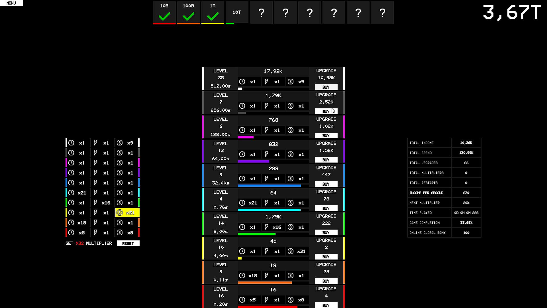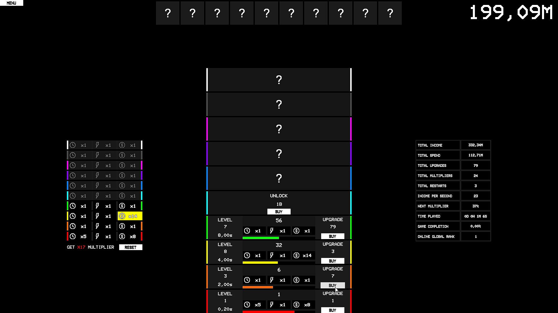Your goal is to unlock and complete all hidden objectives. You need to use prestige system to achieve it. Reset all your progress and get permanent multiplier for one of your generators.