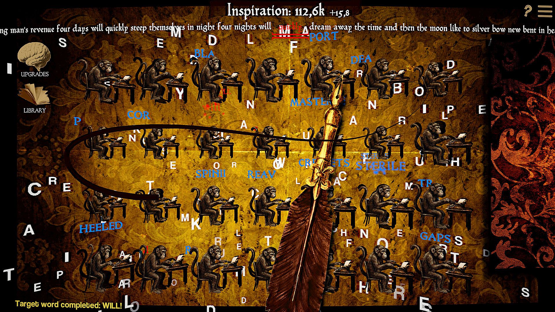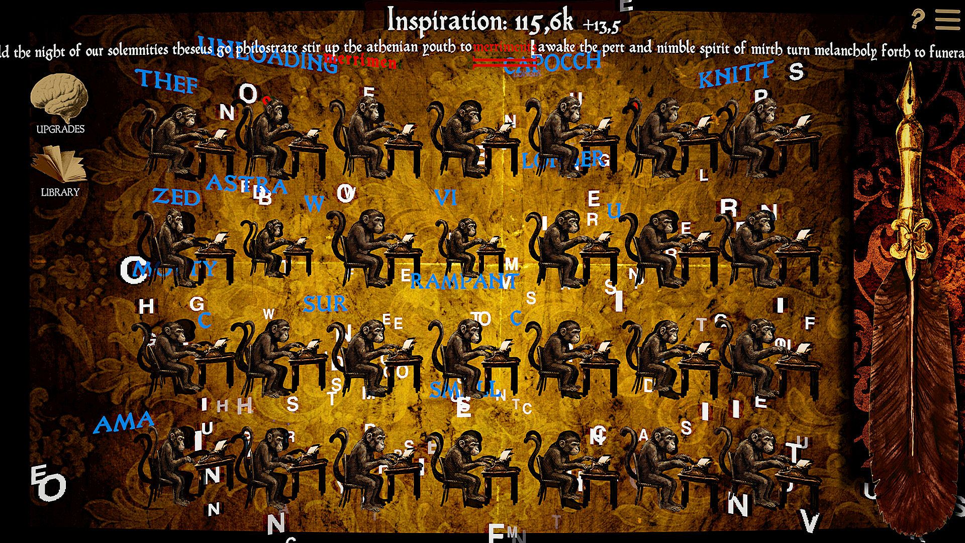 | **Buy Monkey** | Add more typing monkeys to increase word production |