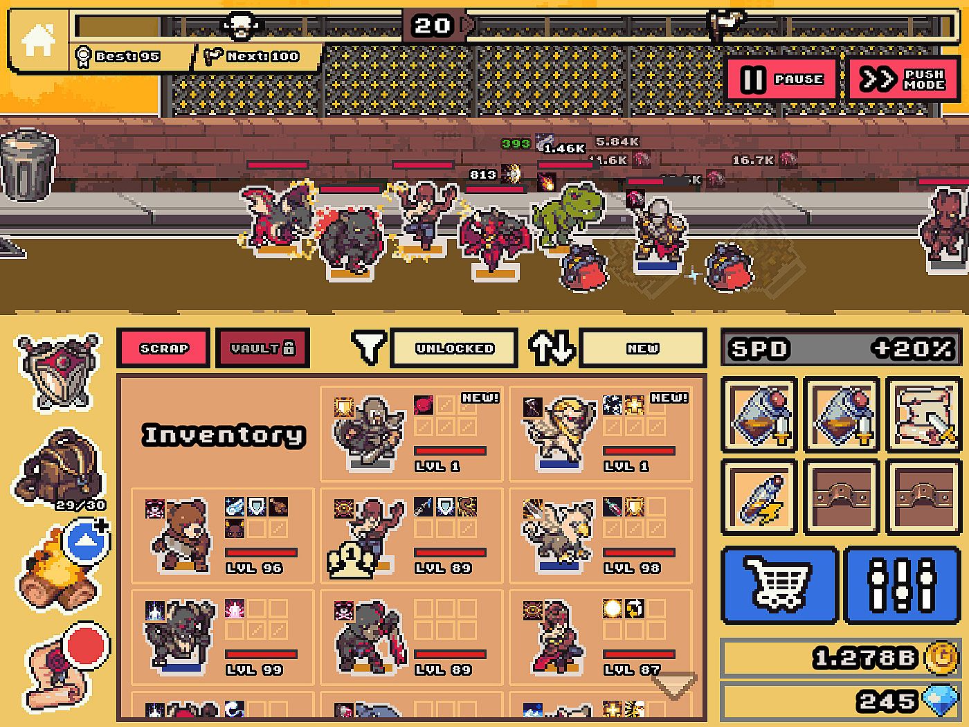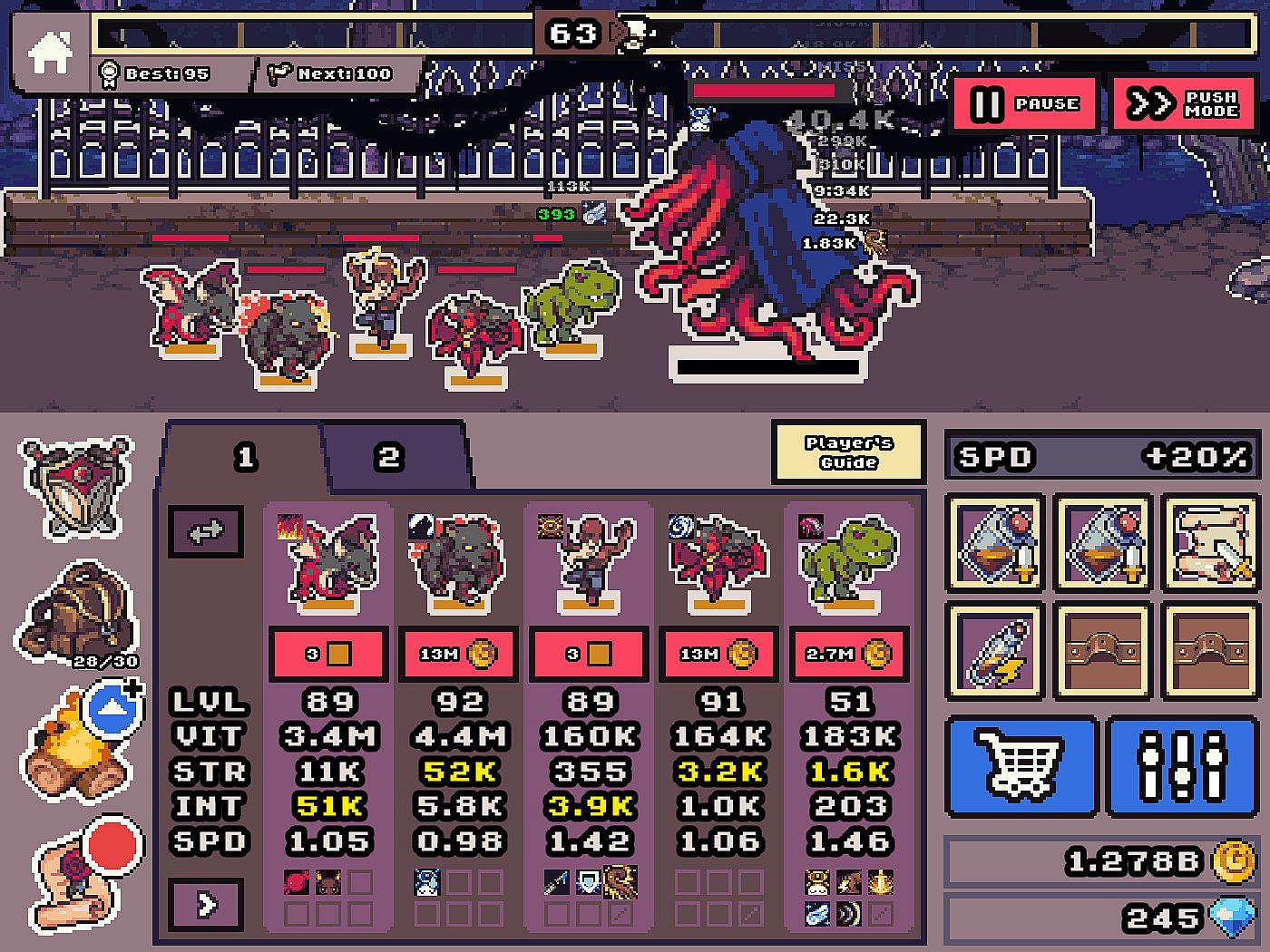 Level up your home base to unlock potions and spells. New options for skilling and leveling up unlock as you reach new distances and buy buildings. Explore monster fusion in the Secret Lab, and participate in monster sacrifice at the Altar for permanent boosts.