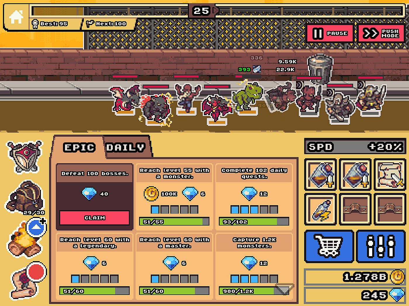 Your monster team can enter the Tower to battle legendary heroes and epic monsters. Defeat every monster team in battle to climb the tower. Collect gems and monster rewards for every victory.