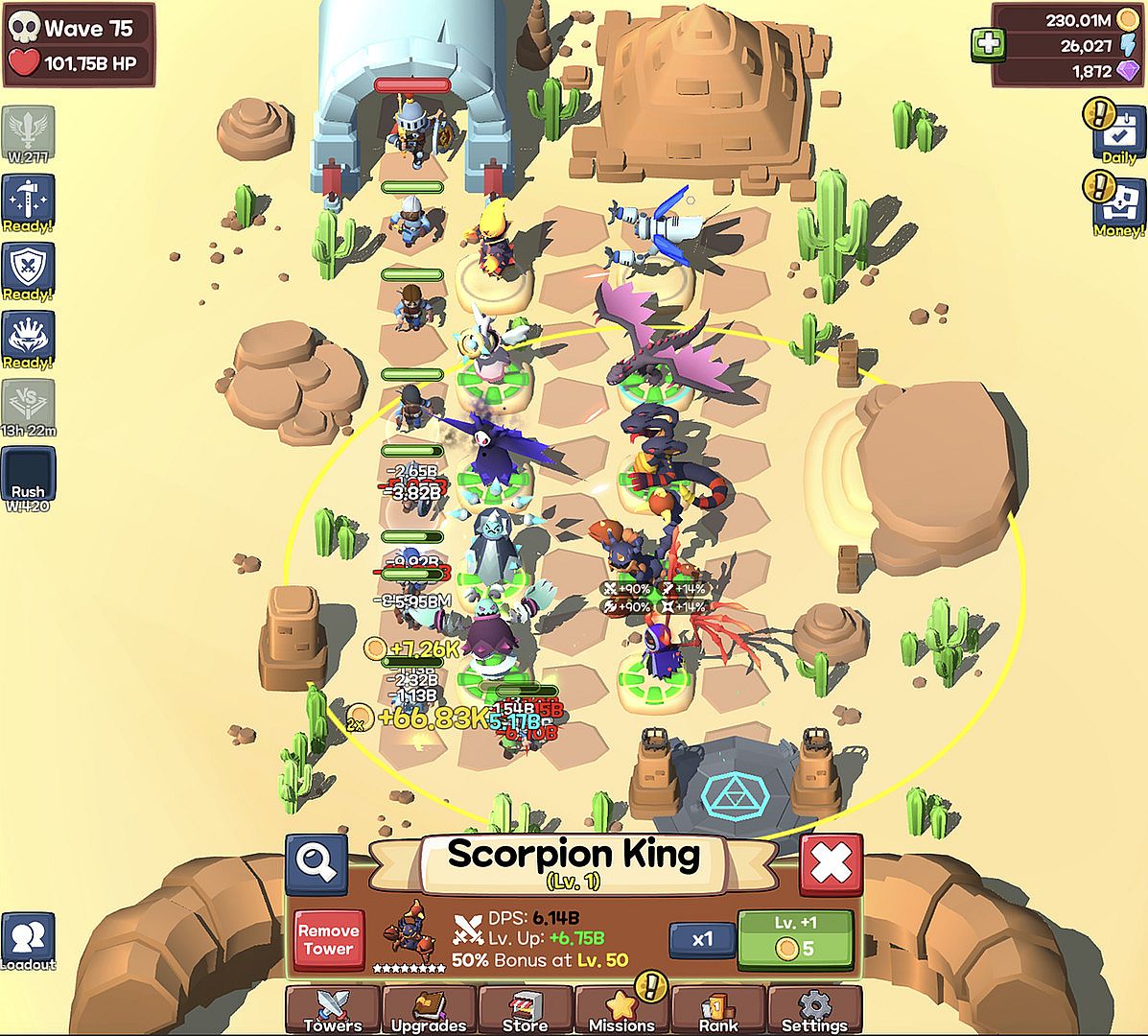 Defeating waves of invading humans gives you upgrades to bolster power, speed, and other stats - and the more humans you obliterate, the more monsters you’ll unlock. Idle Monster TD: Evolved is filled with awesome beasts, ranging from cute flower monsters to big metal robots to scorching fire dragons. Discovering and evolving new creatures is part of the fun.