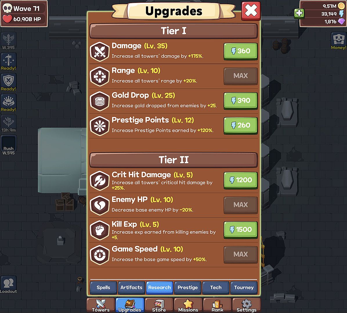 • Discover countless upgrades, research, spells, artifacts, technology, and more to level up with a variety of different resources.