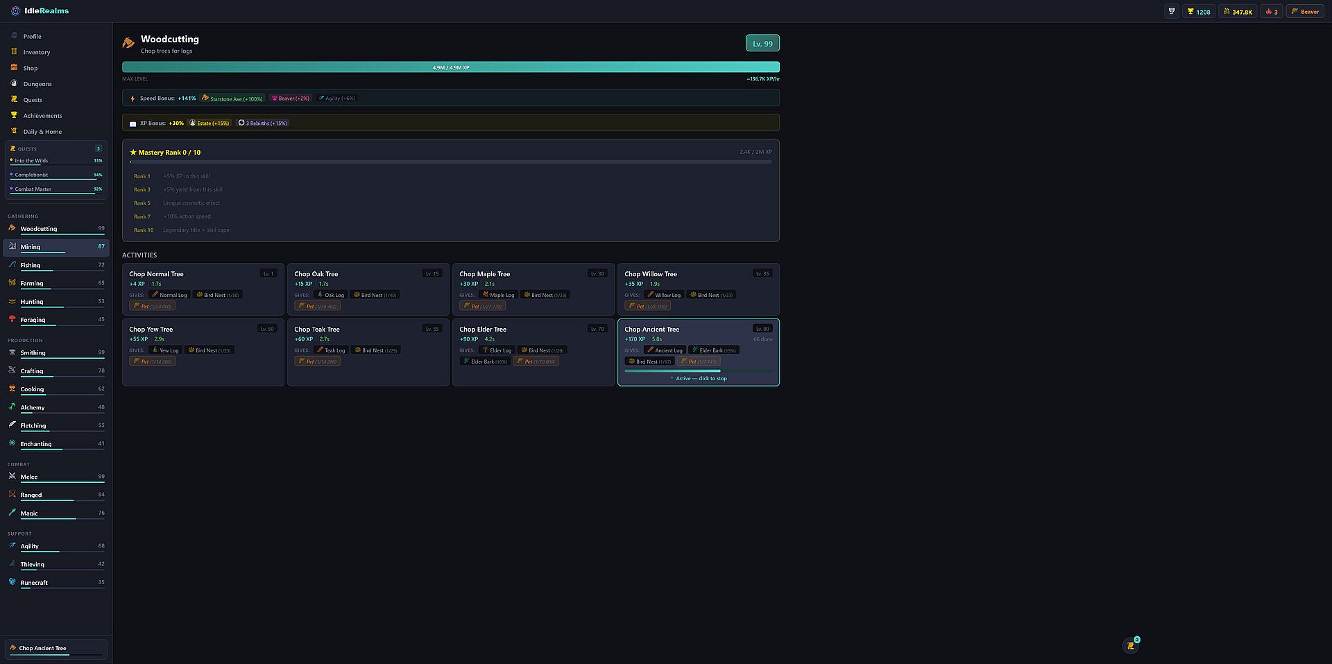• Mastery Ranks (post-99) for every skill with unique bonuses