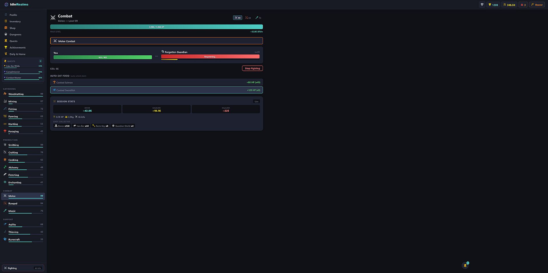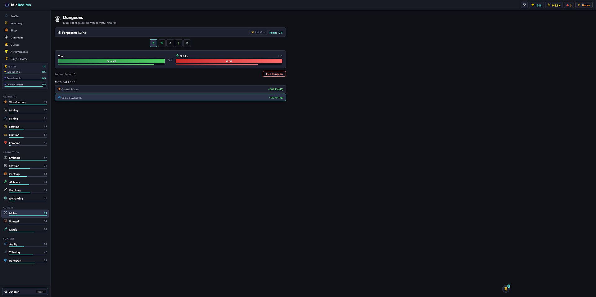 Nothing exists in isolation. Mine ore to smelt bars. Smelt bars to forge weapons. Use weapons to fight monsters. Loot rare materials to enchant your gear. Every skill feeds into every other skill.