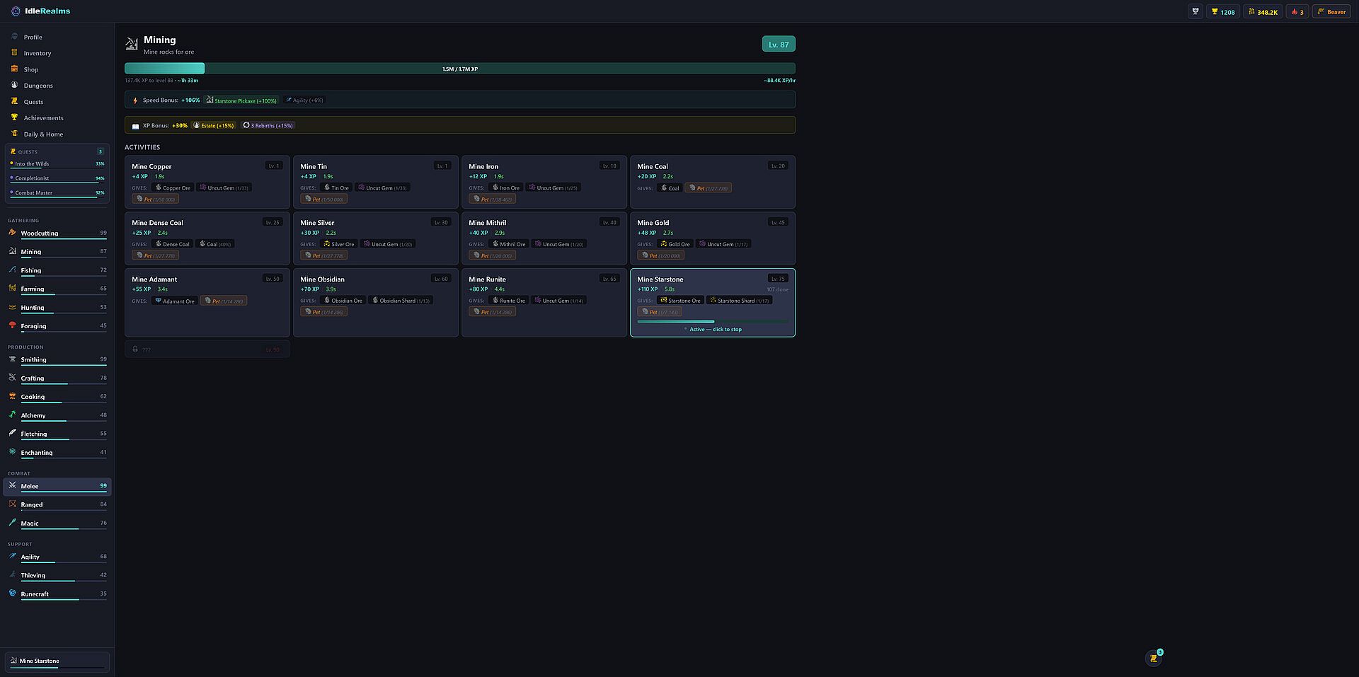 • 3 Support Skills — Agility, Thieving, Runecraft