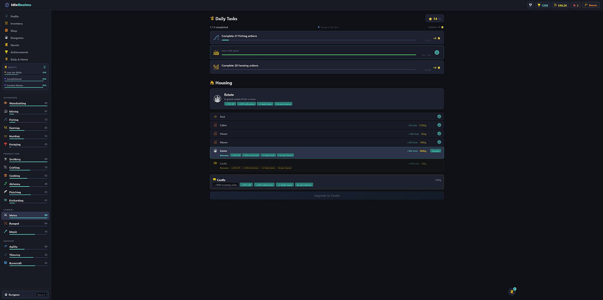 • Housing Upgrades — From tent to castle