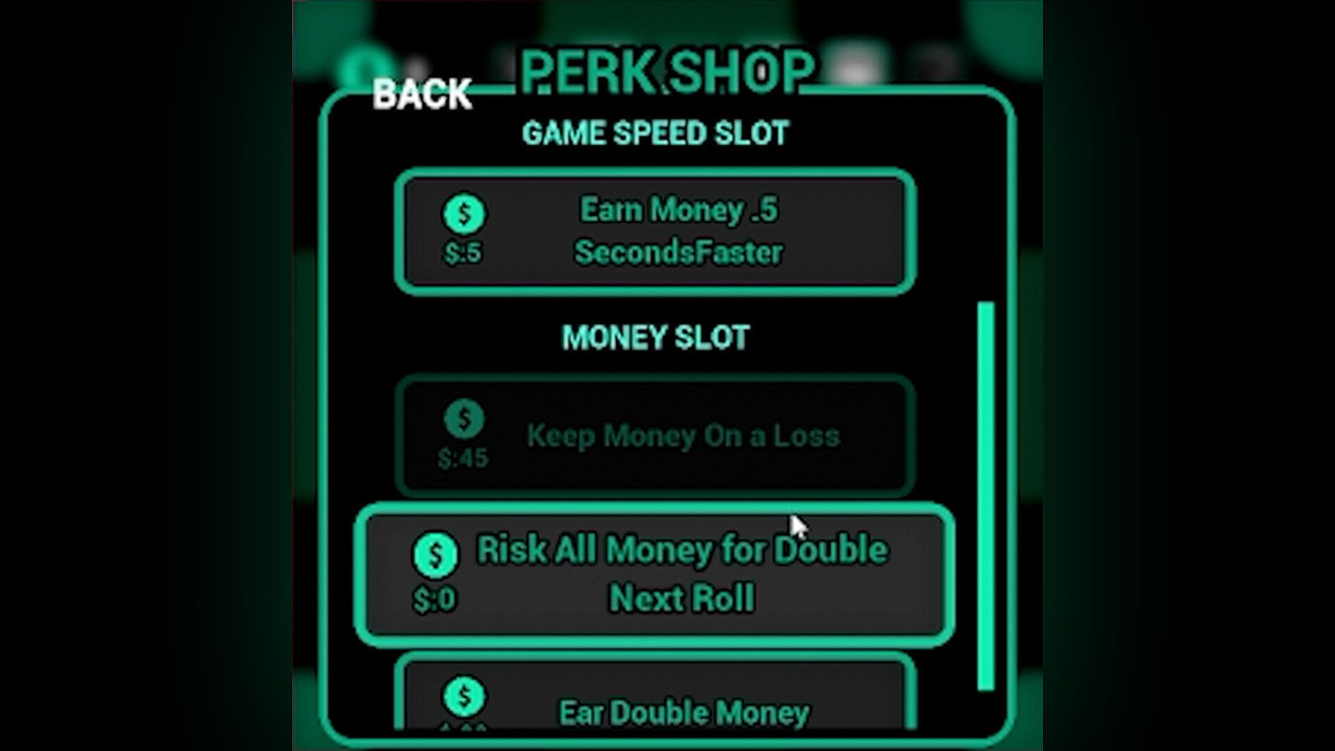 Either idle roll or manually roll to gain XP and cash