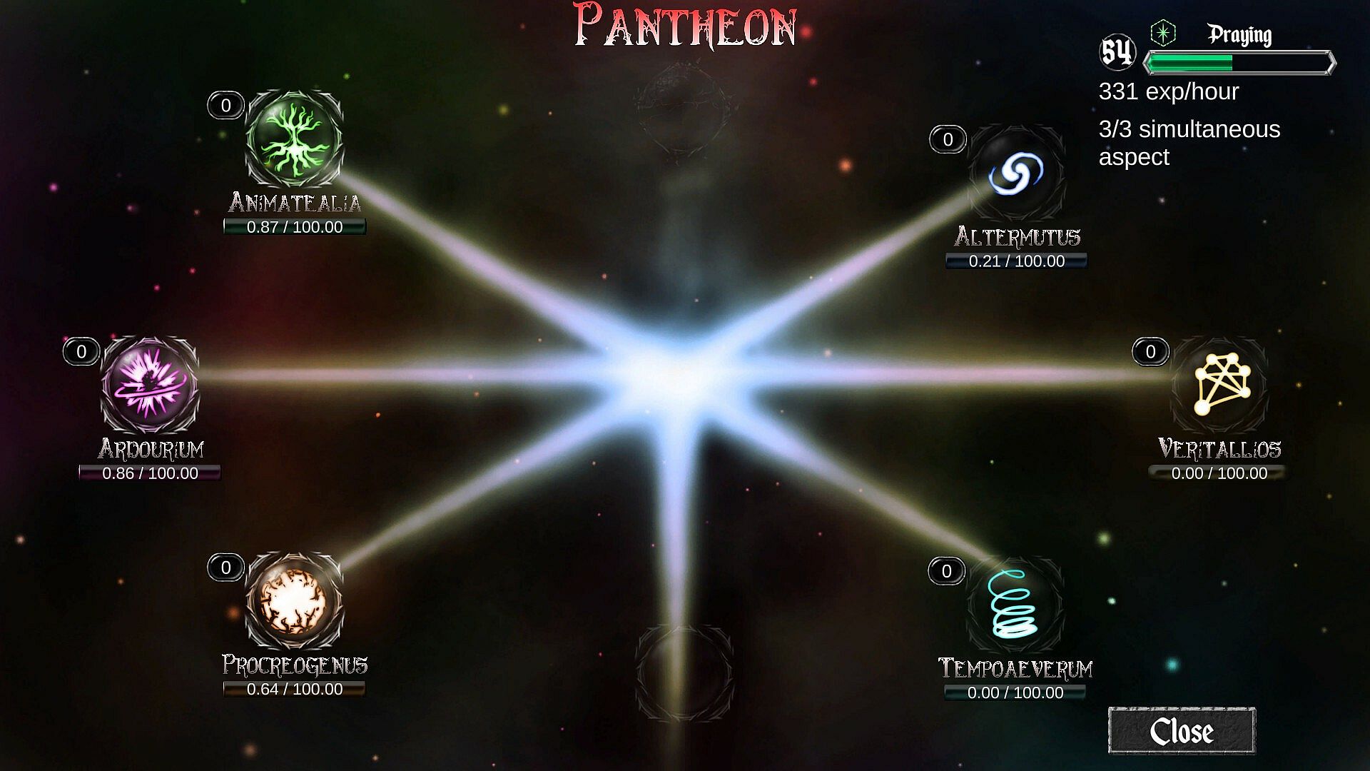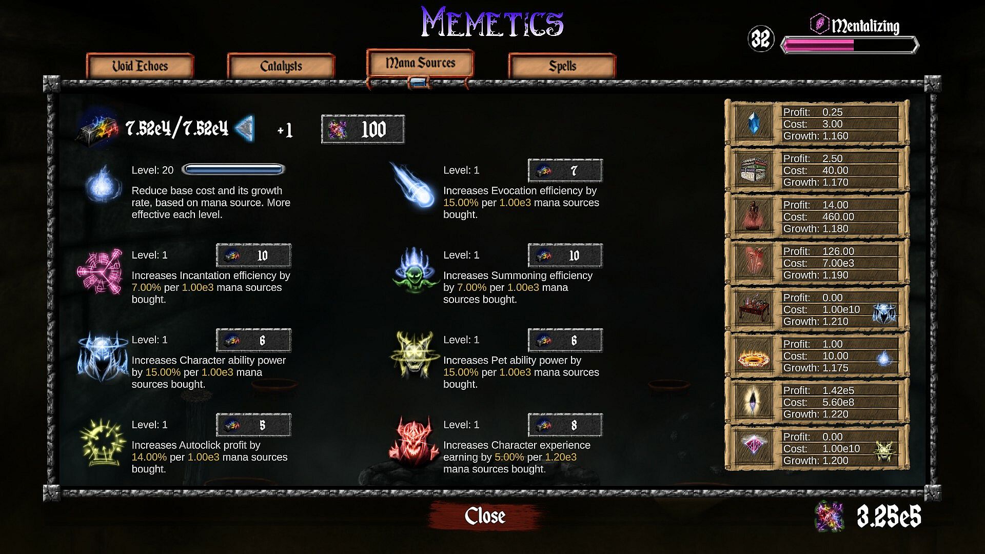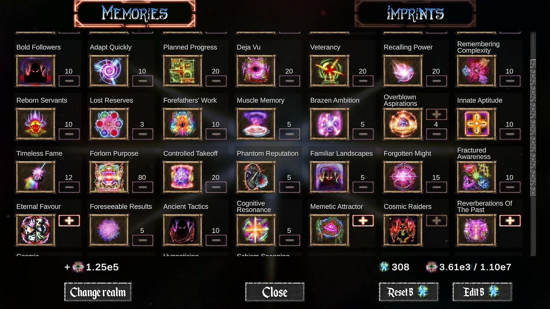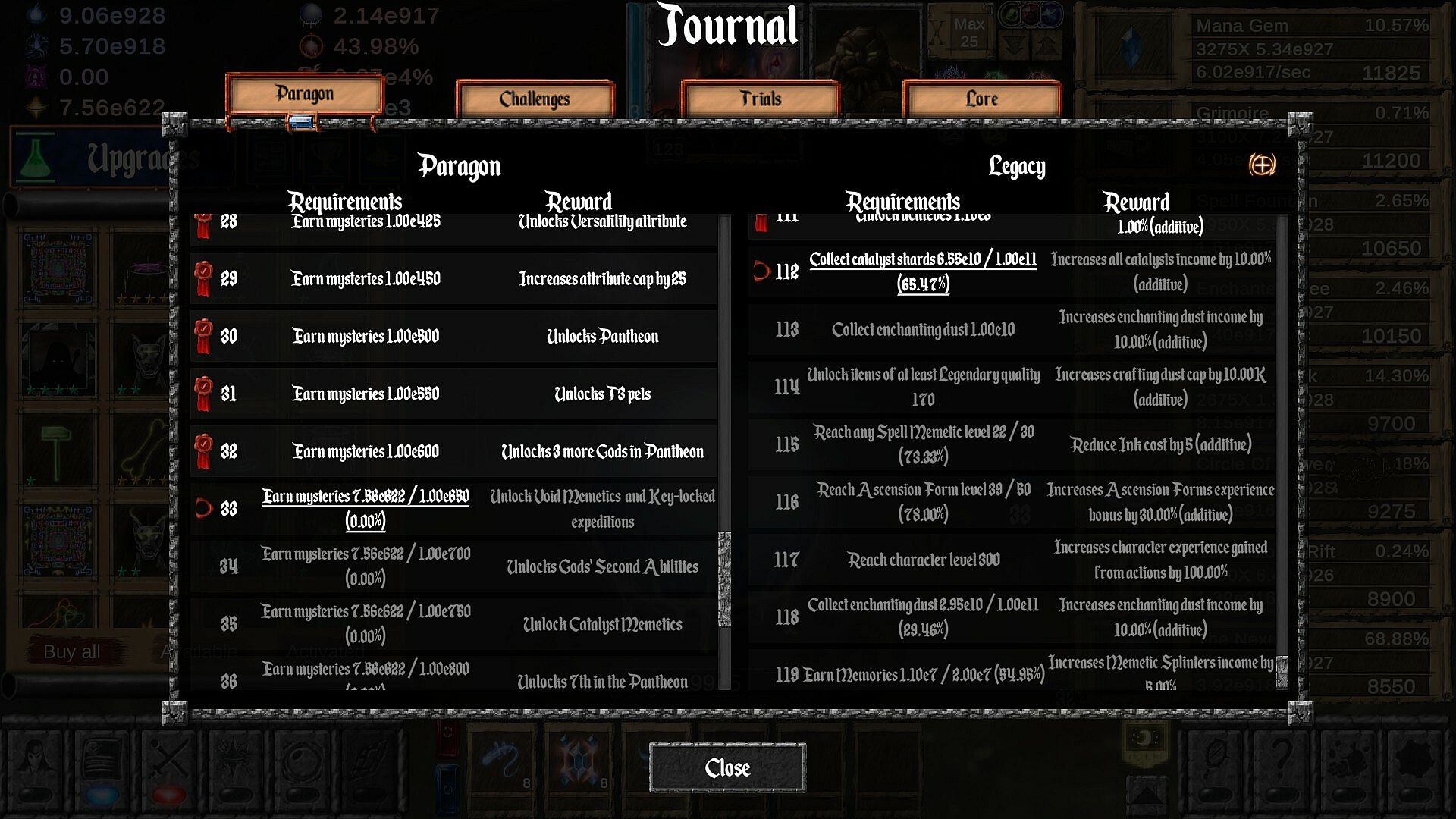 Amount of available upgrades, achievements, and various more complex mechanics like Challenges, Trials, Catalysts and Expeditions allow for secondary goals and ways to boost you even more. There's much to learn and explore!
