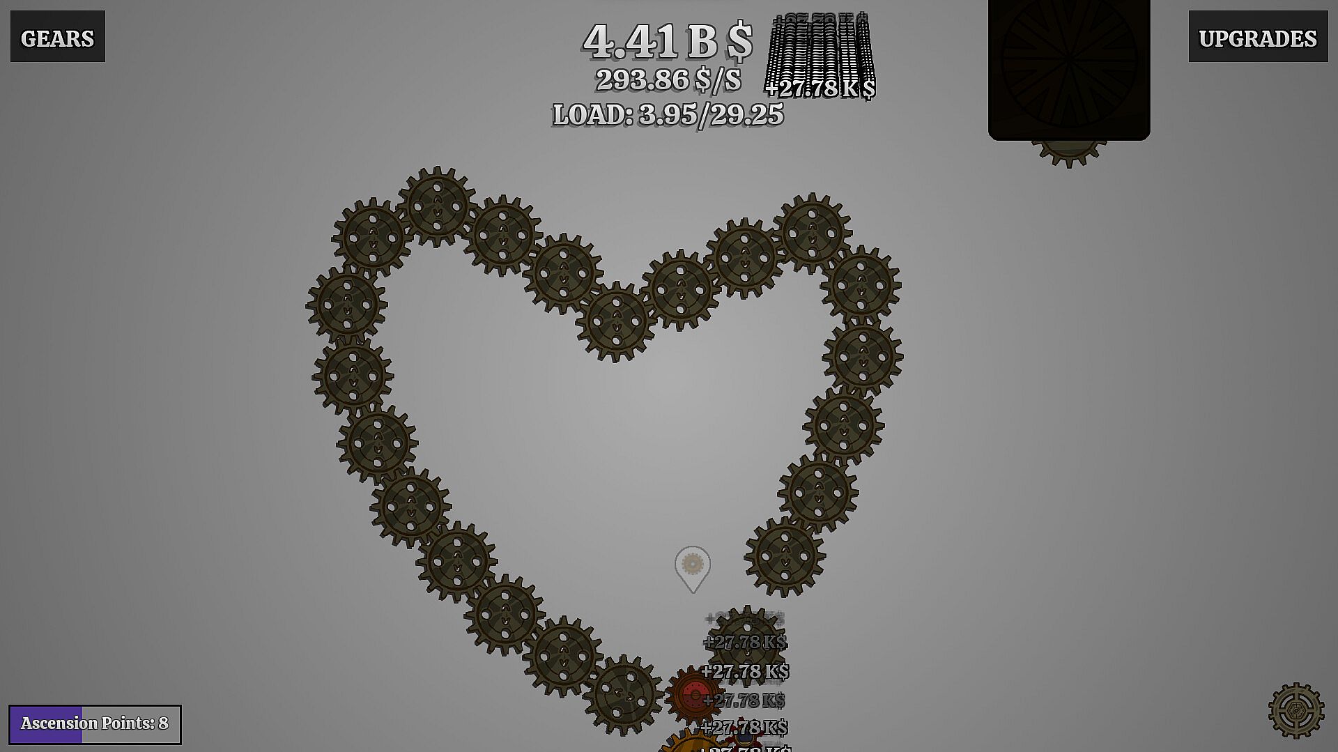 • Spend money in Gears that will increase the money you produce