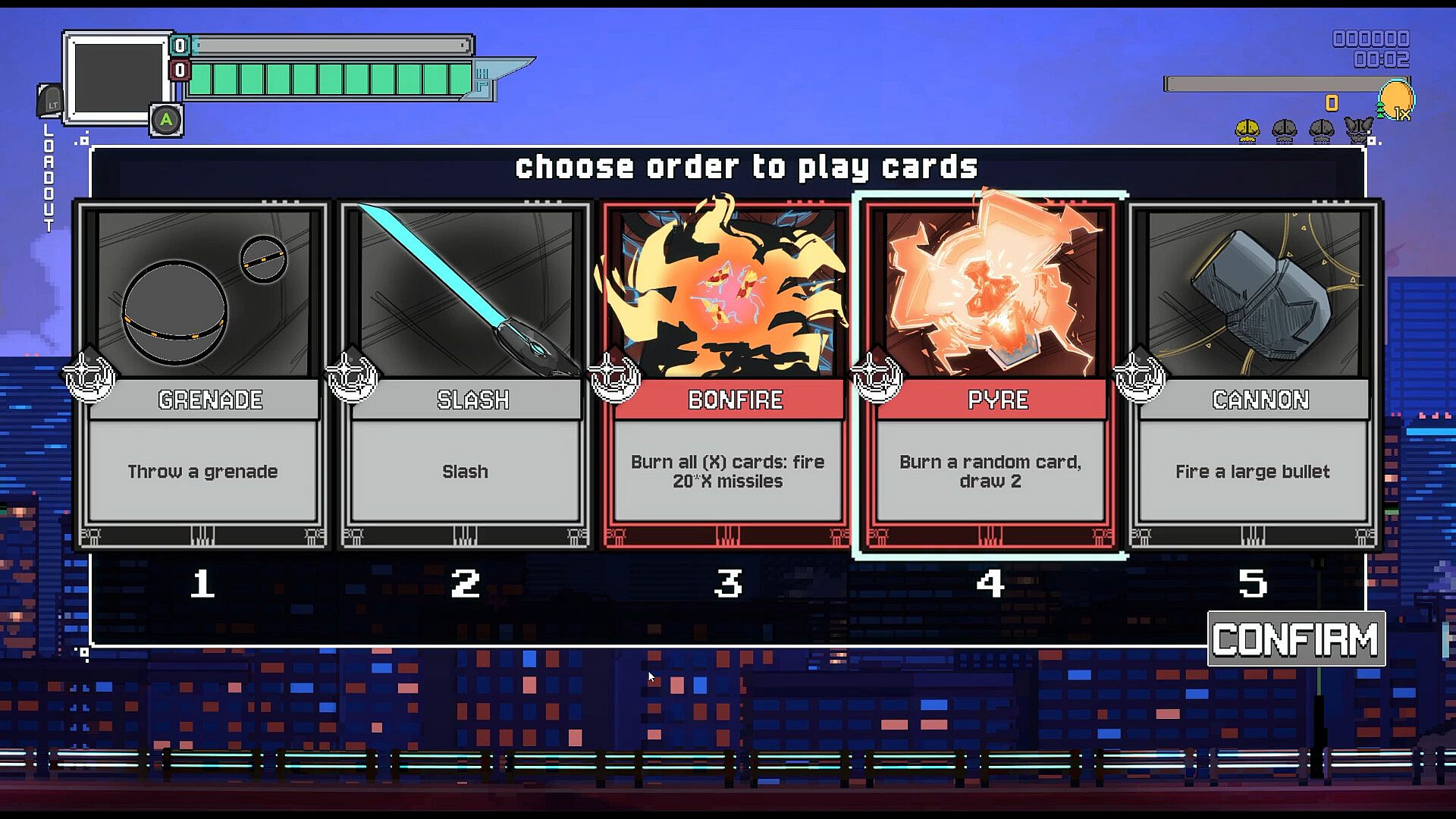 • The Final Gambit: Use Hubris to sacrifice health for a massive hand of cards, then unleash Bonfire to burn that entire hand away in exchange for a screen-filling volley of missiles that obliterates everything.