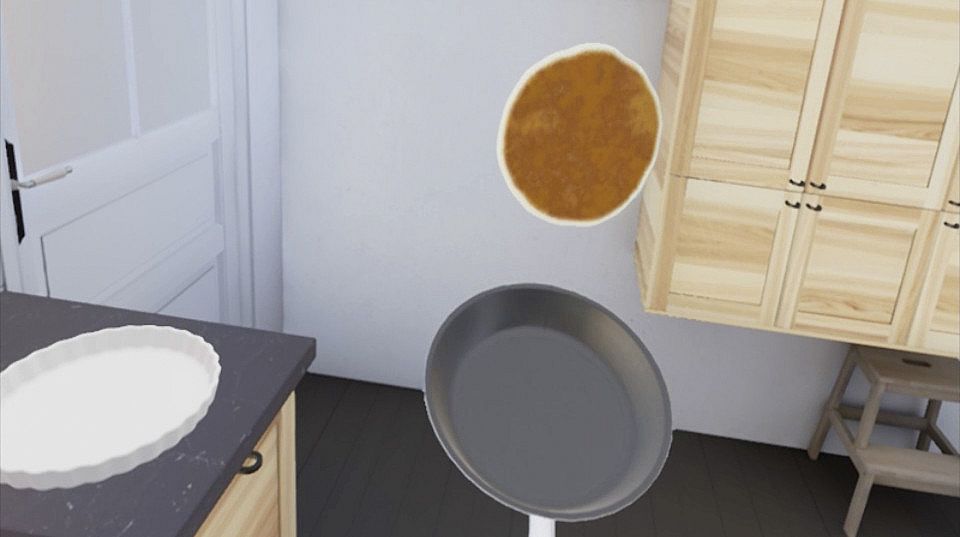 The core of IKEA VR Pancake Kitchen revolves around interactive pancake preparation in a virtual kitchen. You begin by selecting cabinet fronts, opting for bright or dark styles to customize the space. A virtual IKEA kitchen specialist provides guidance on key aspects of kitchen planning, such as layout efficiency and storage solutions, while you follow on-screen instructions to mix batter, heat pans, and flip pancakes. The mechanics emphasize simple hand controls for grabbing ingredients and tools, with a challenge to manage up to four pans simultaneously for multitasking practice. At the end, you switch to a child's perspective to set the table, offering a unique view on how the kitchen feels from different heights. Calibration is key for immersion, involving floor height adjustments and IPD settings to align the virtual world with your physical setup.