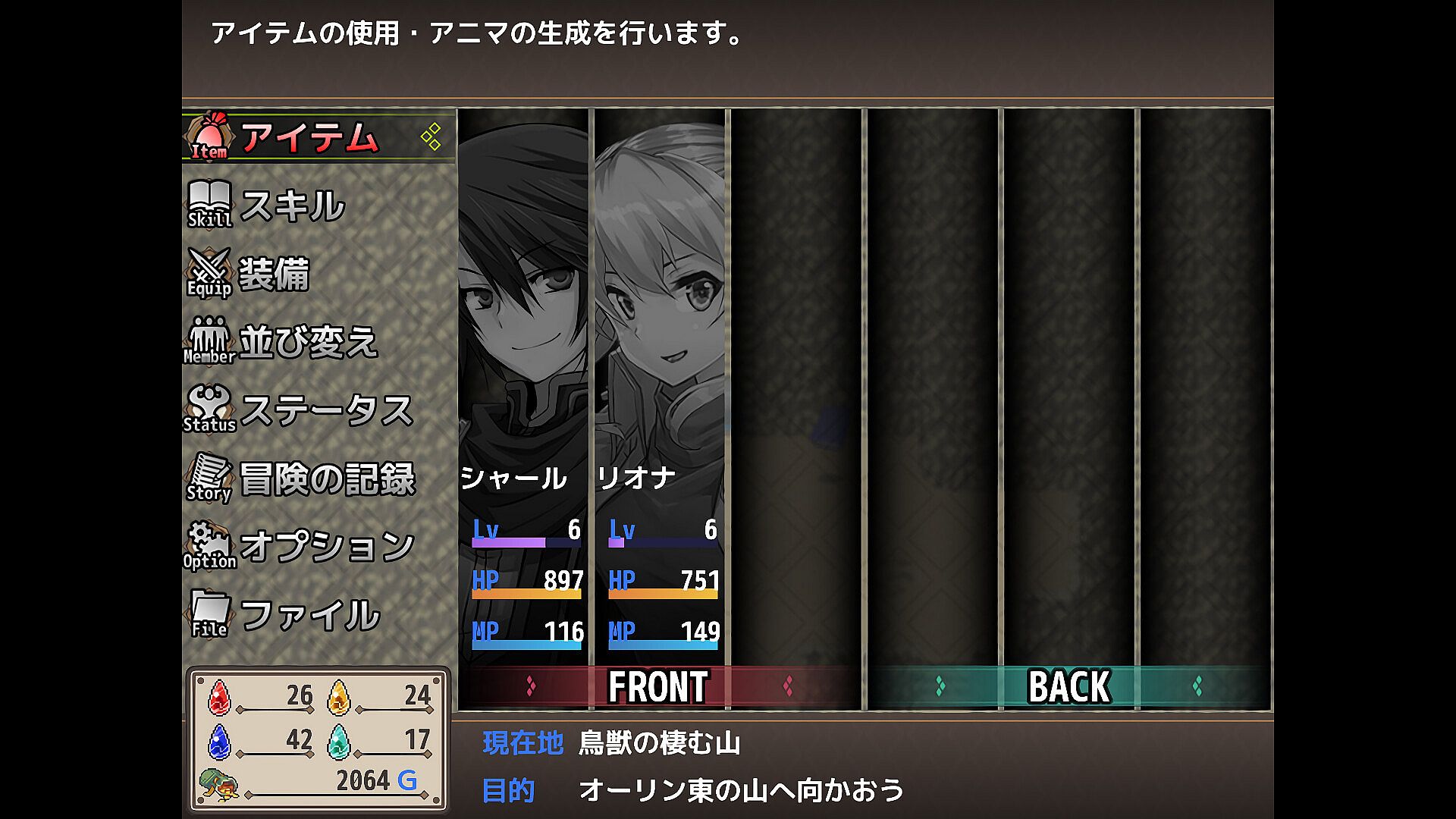 Developed using RPG Maker VXAce, this is a 2D turn-based RPG. It features a system where SP earned by defeating enemies can be freely allocated to acquire skills. A key strategic element is the ability to freely swap party members during combat, expanding tactical possibilities.