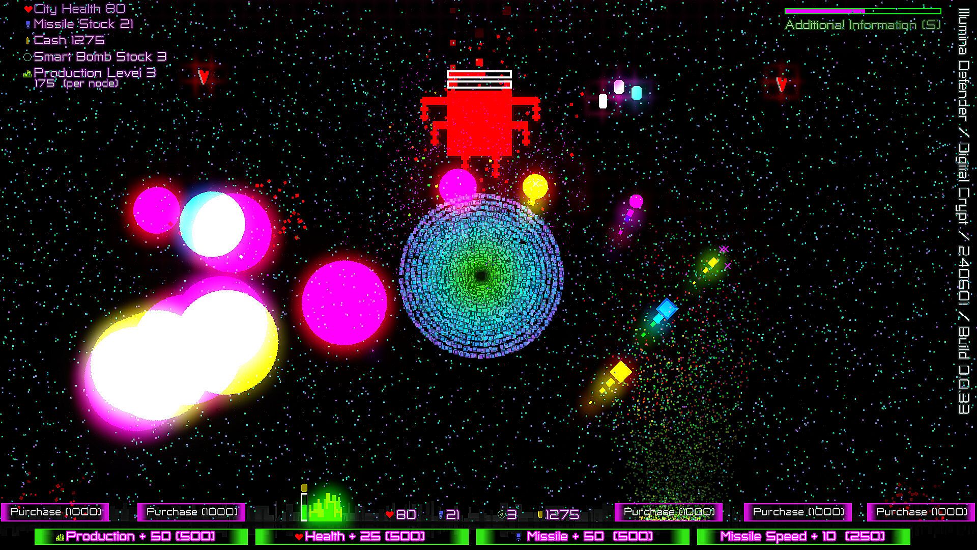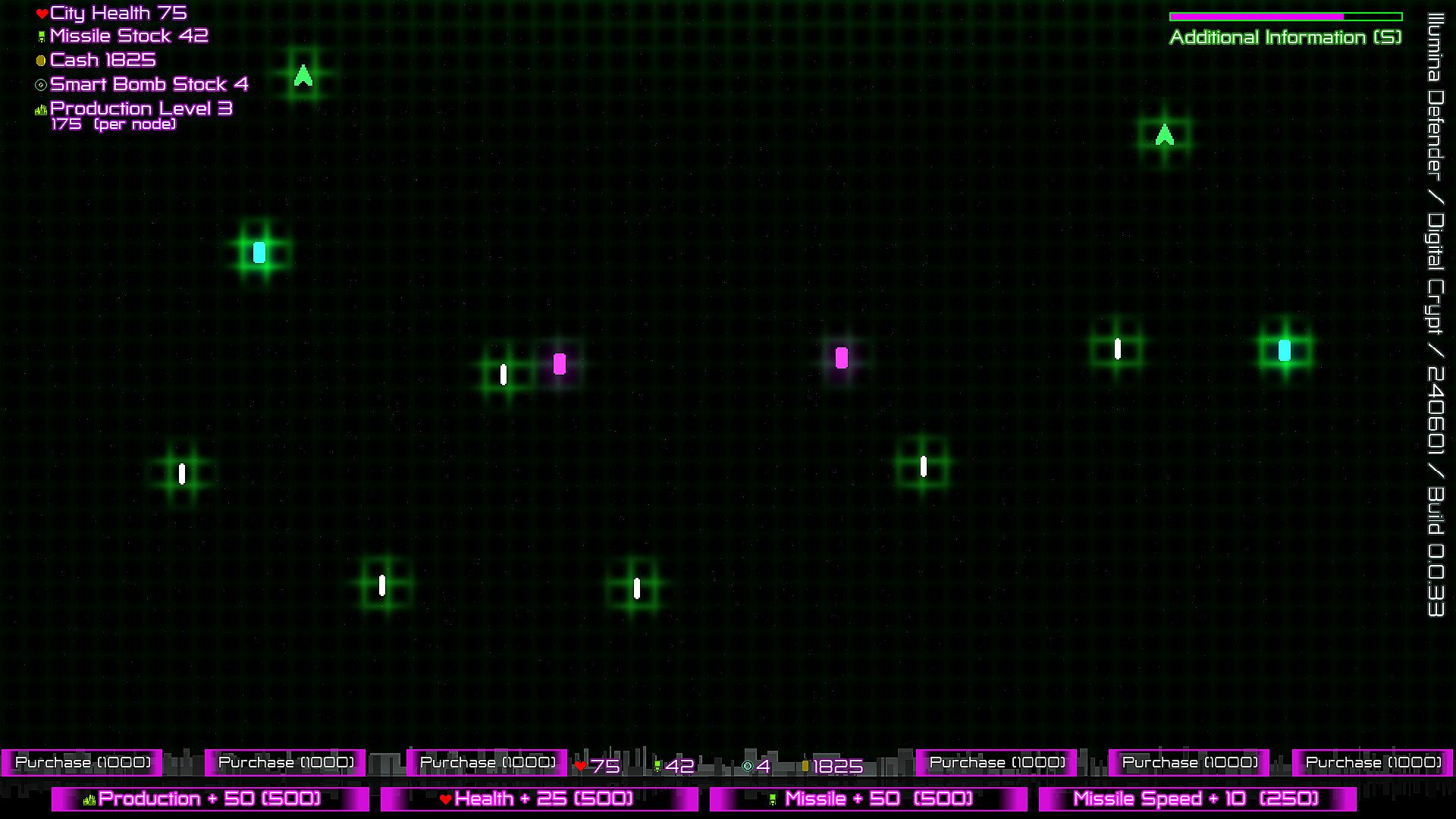 • Strategic Upgrades: Balance your resources to buy nodes that generate cash, missiles, and city health improvements.