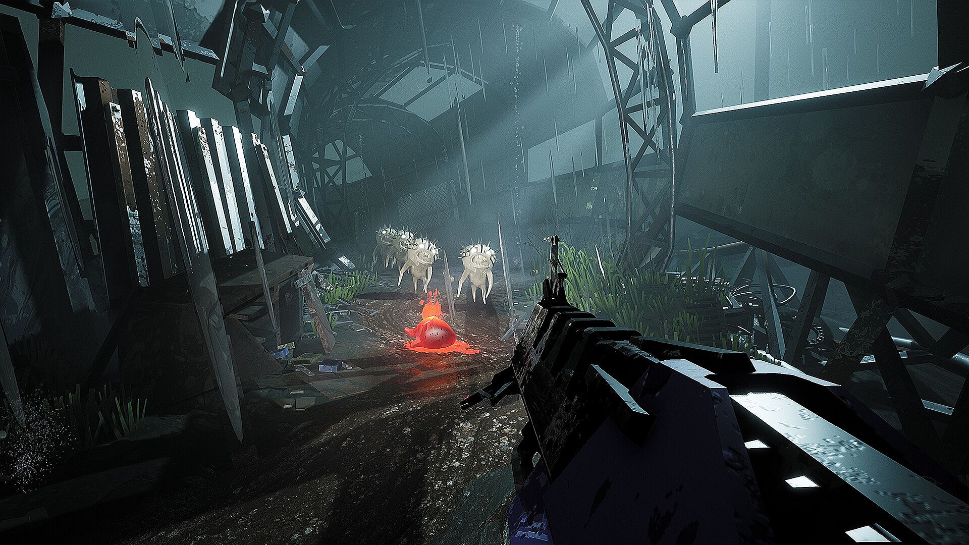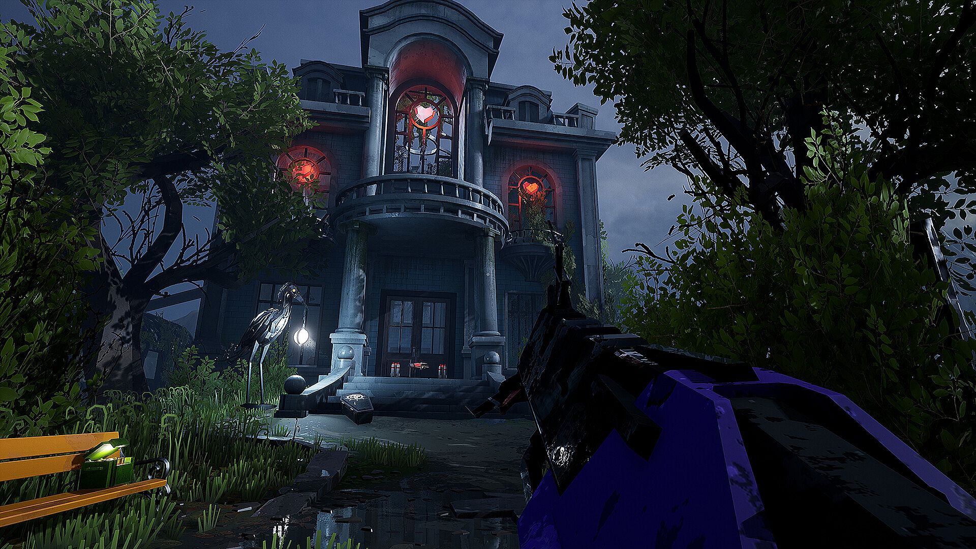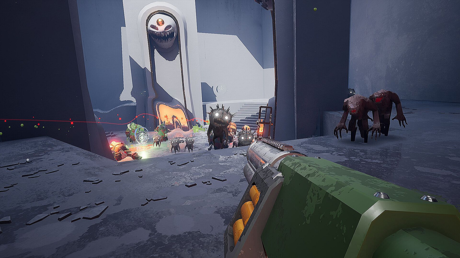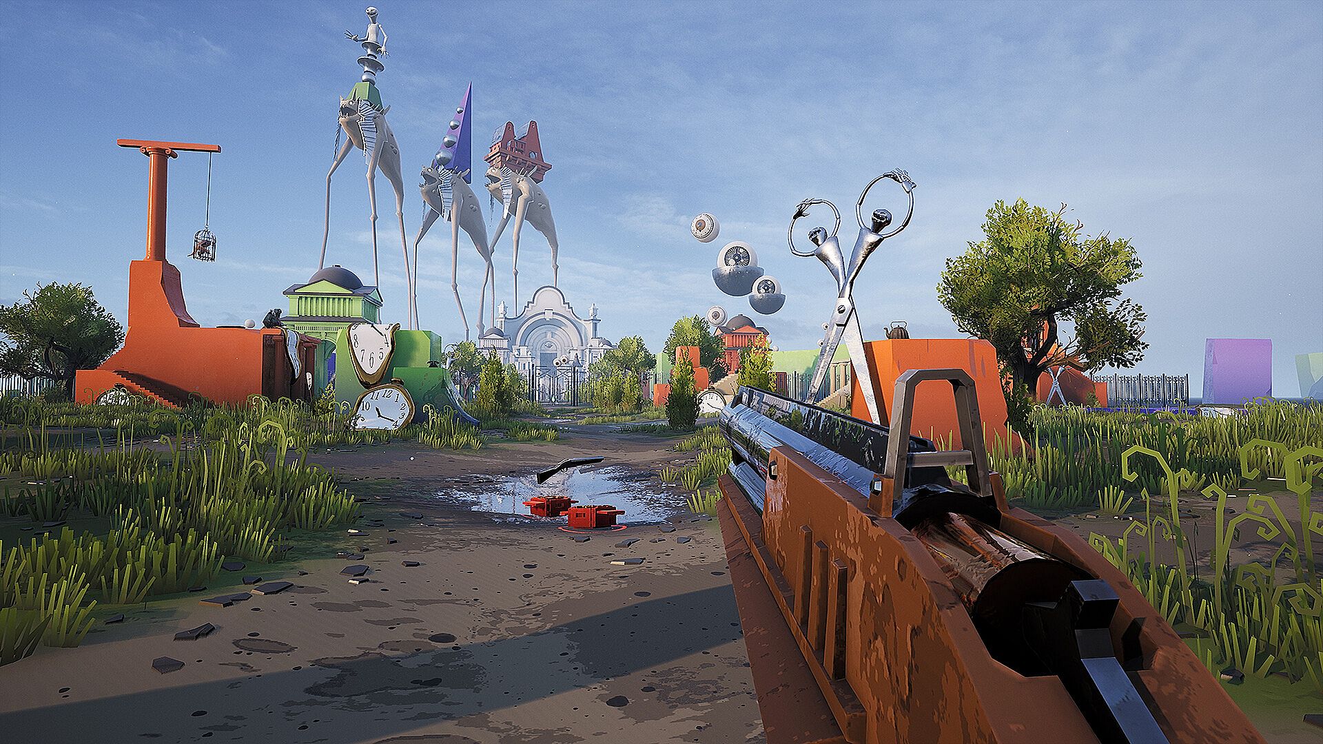 The game starts in a confined room hinting at isolation, then shifts through gloomy corridors of despair to expansive levels evoking Salvador Dali's surreal art. Each environment conveys emotions like sadness and loneliness without traditional plot. Fans of Doom, Quake, Blood, and Serious Sam will relish the stylish, comedically brutal action on PC.