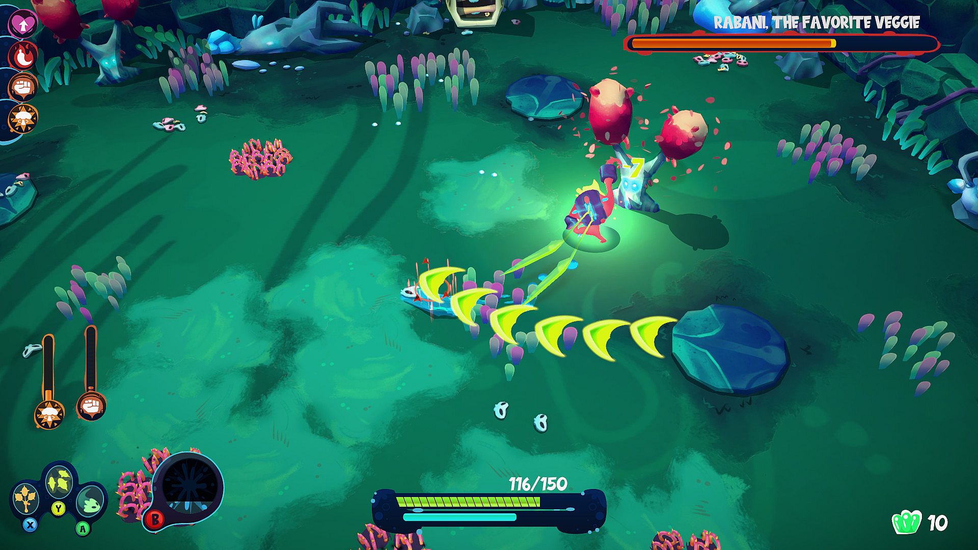 Face the Plantizards and defeat their army Captain Bosses to take over the dominion of planets. Plantizard come in various forms, from a small sharp-fanged lettuce to a big reptile-plant that performs big chomps.