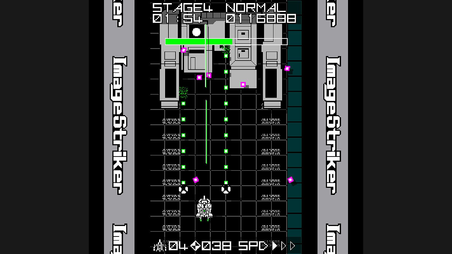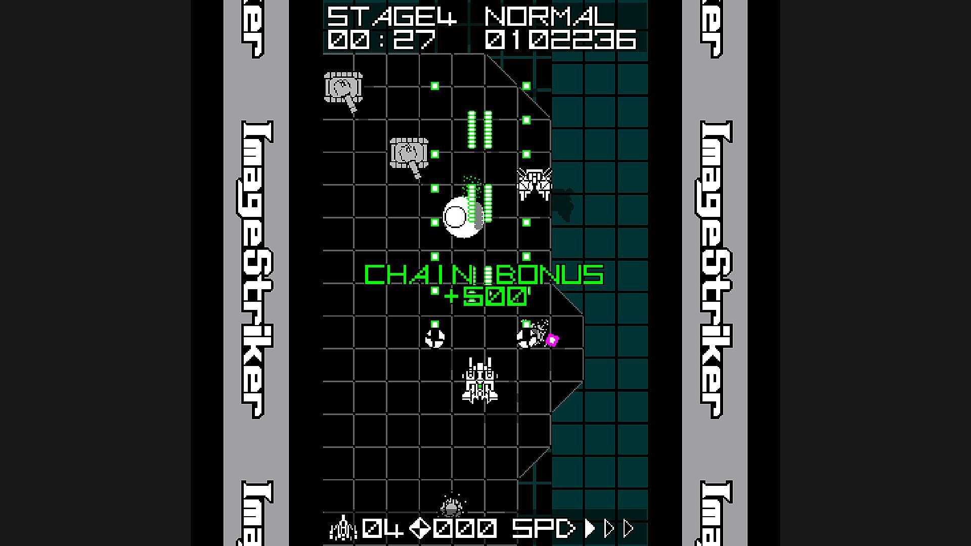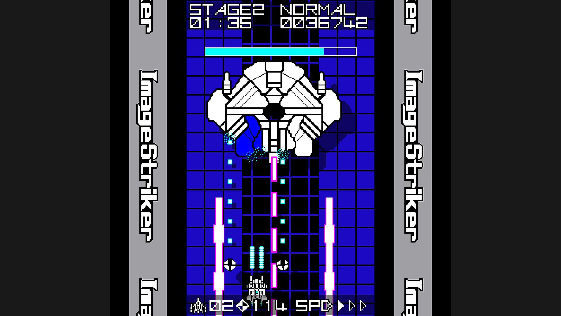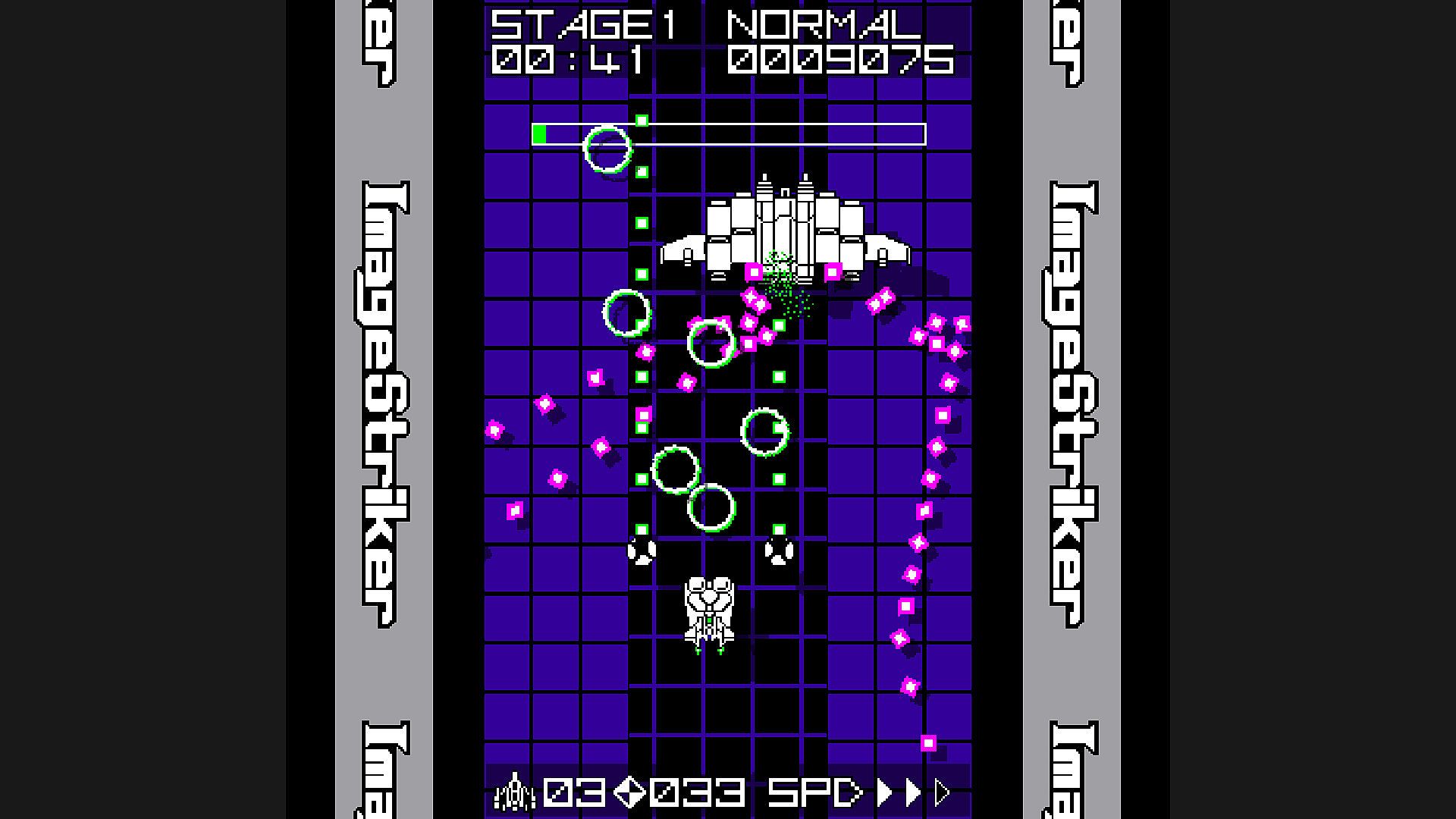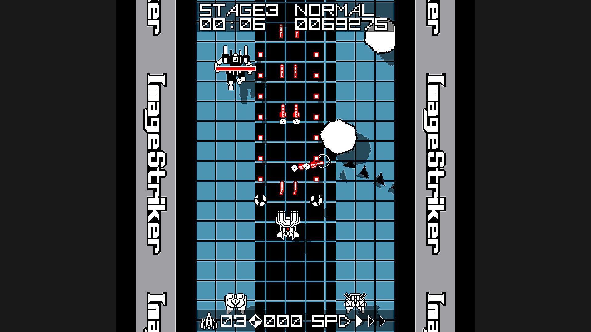 You can operate the fighter “Image Striker” to fire shots and destroy enemies.