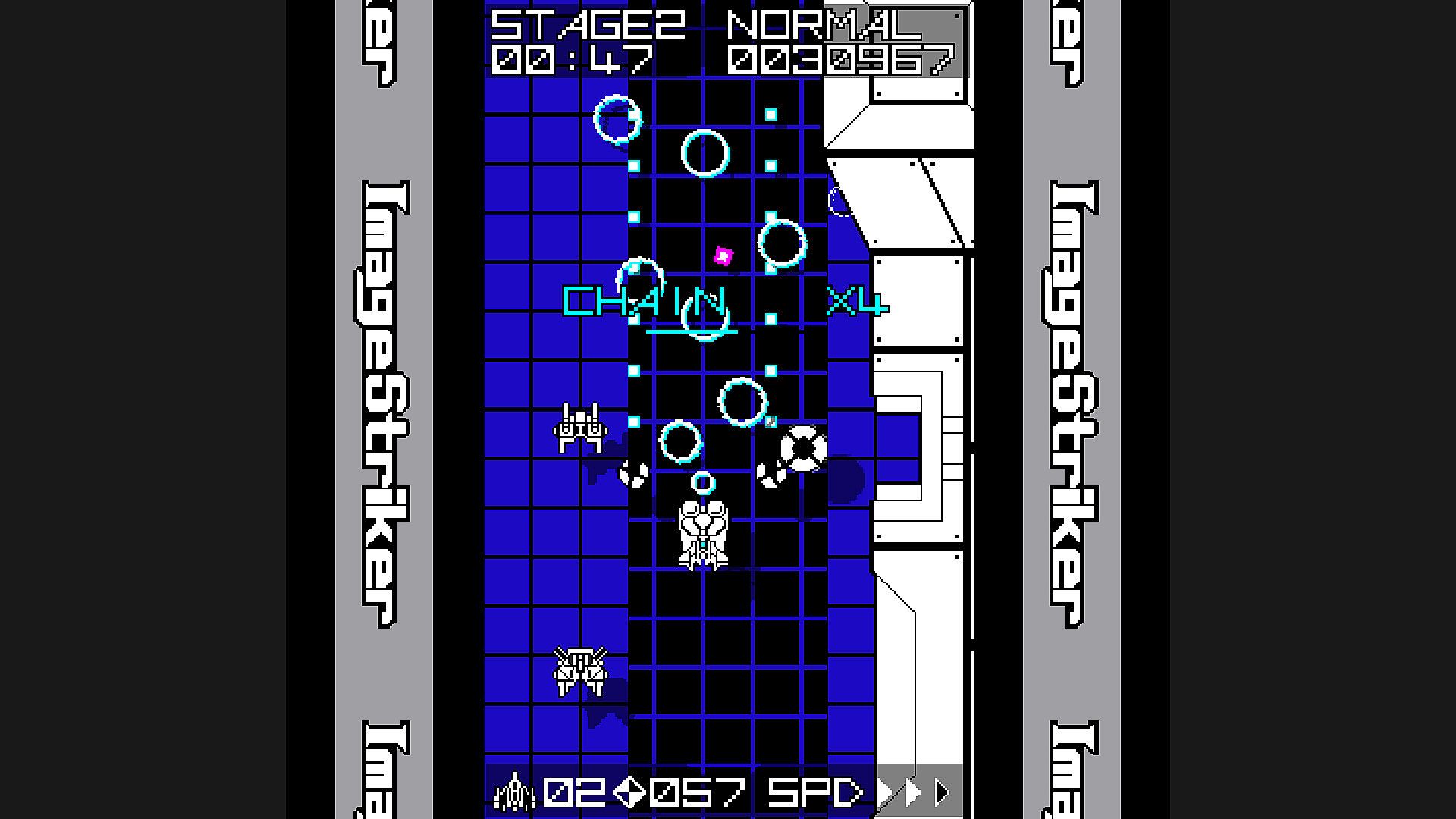 Take command of the fighter Image Striker in this 2D vertical scrolling shooter. Fire shots to destroy enemies while switching two pods between forward, sideways, and backward positions for flexible attacks. Equip one of six head parts to match the situation and add strategy to each run. Arcade mode challenges you through six stages across three difficulty levels, with crystals boosting your score on clear and chain kills ramping up points. Caravan mode delivers a intense 3-minute score attack. Adjust speed in three levels as you chase local and online rankings-perfect for casual shooter fans seeking quick, replayable action on PC.
