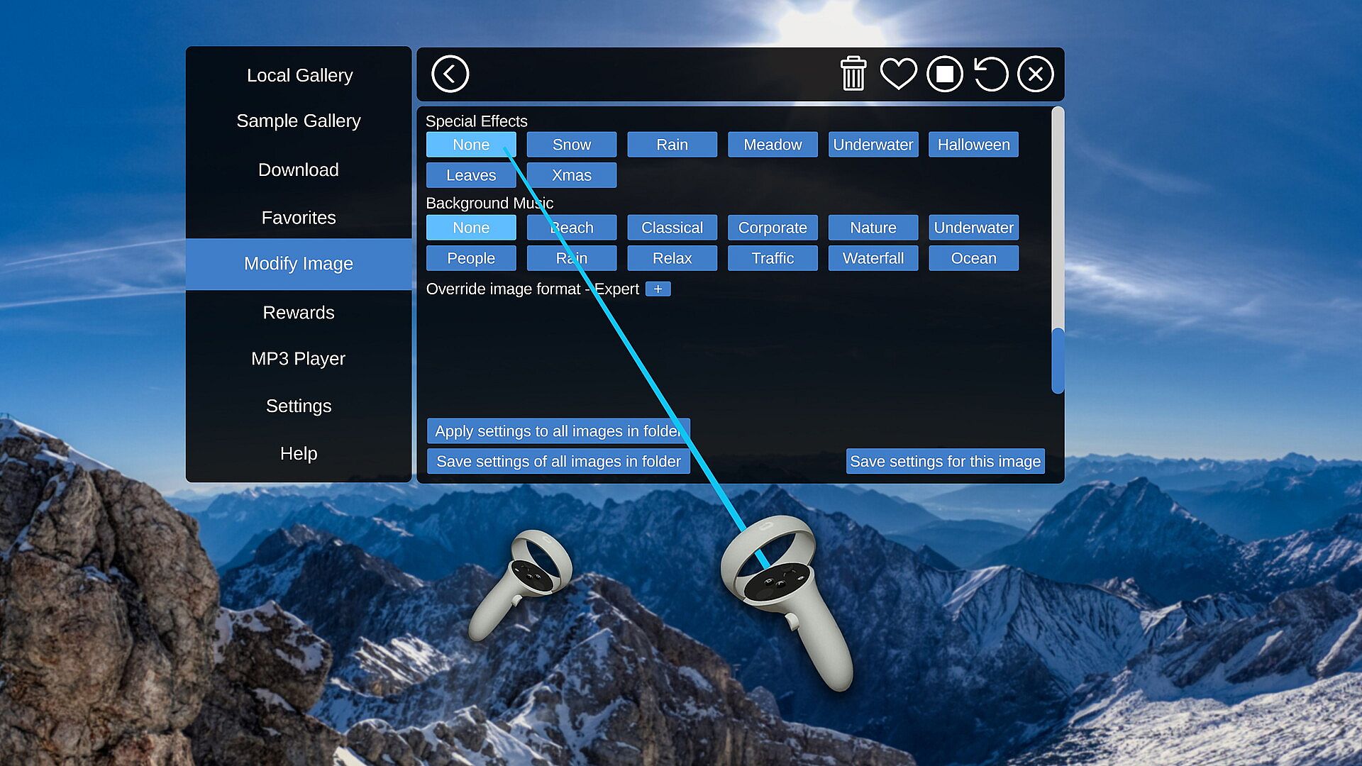 Immerse in your VR180, VR360 (2D & 3D), panoramas, and regular 2D & 3D photos and videos! Enjoy VR slideshows with your family and friends in Multiplayer.