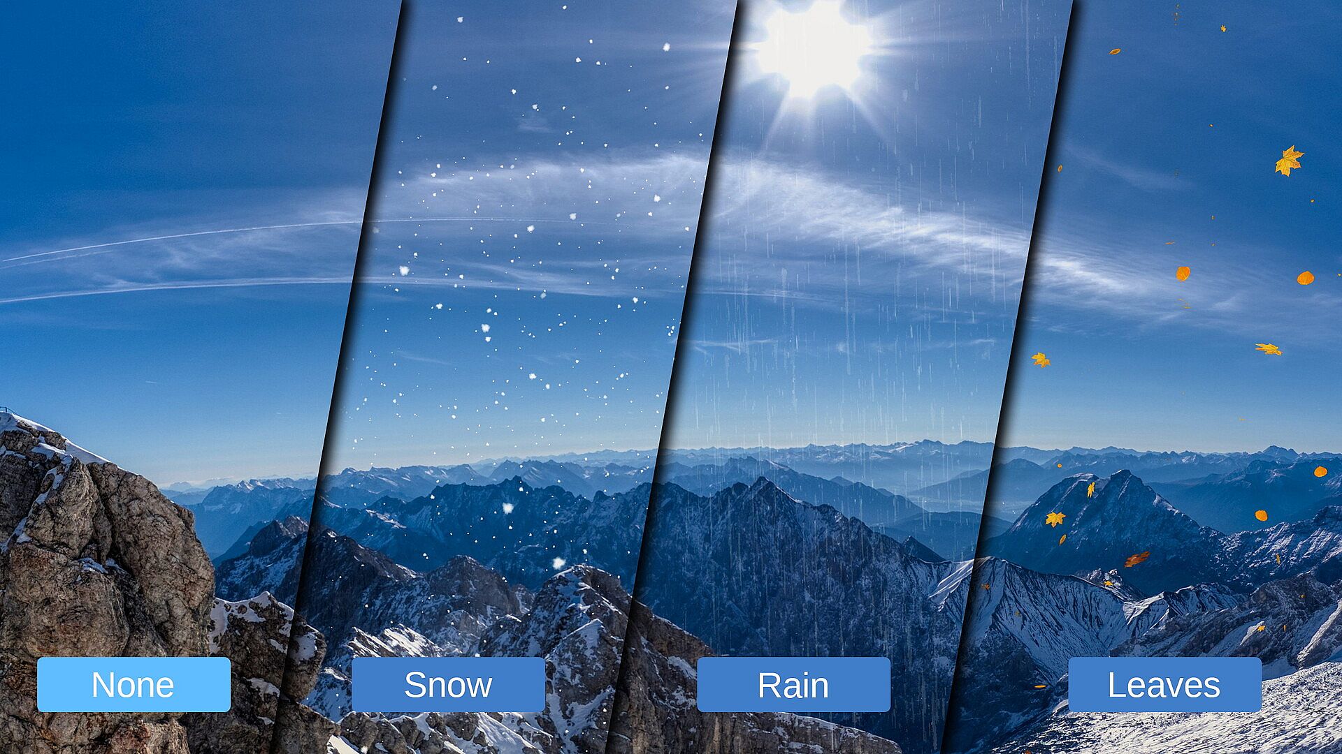 Elevate your images with special effects. Experience the beauty of snowfall and rain, meadows with butterflies, and appreciate falling leaves. Explore environments such as Halloween, St. Patrick's Day, Xmas, and even a hot air balloon, designed for optimal enjoyment of drone-captured images—right from the comfort of your home.