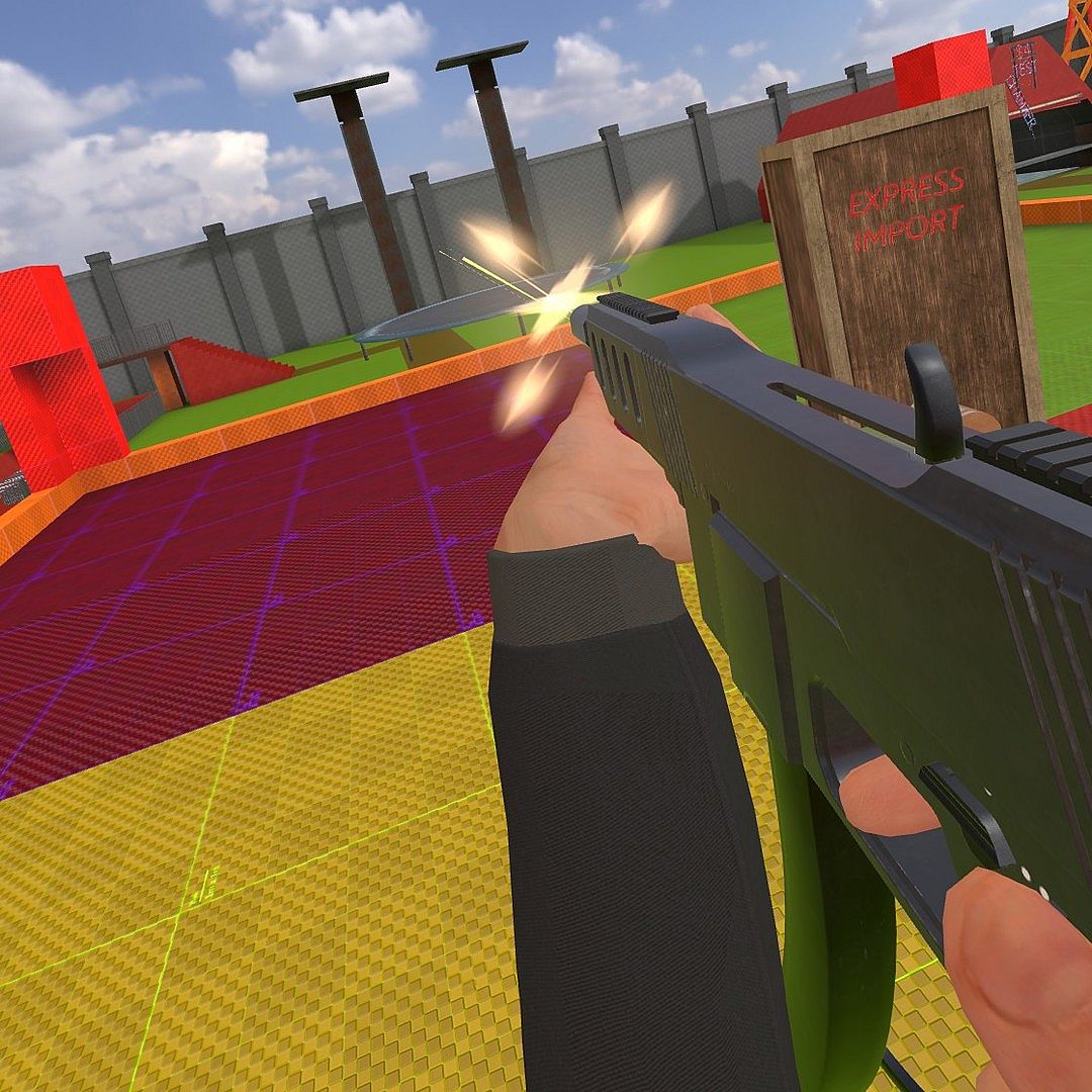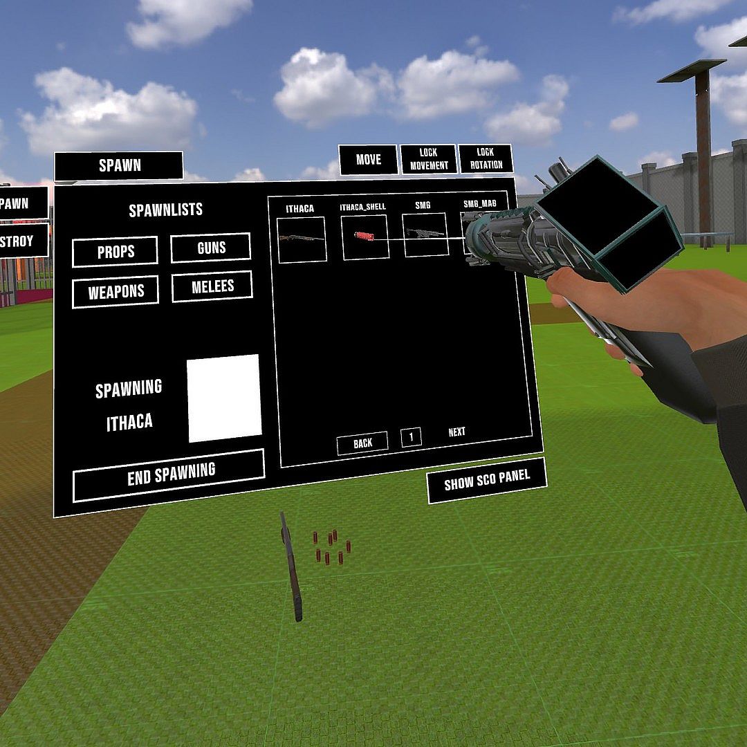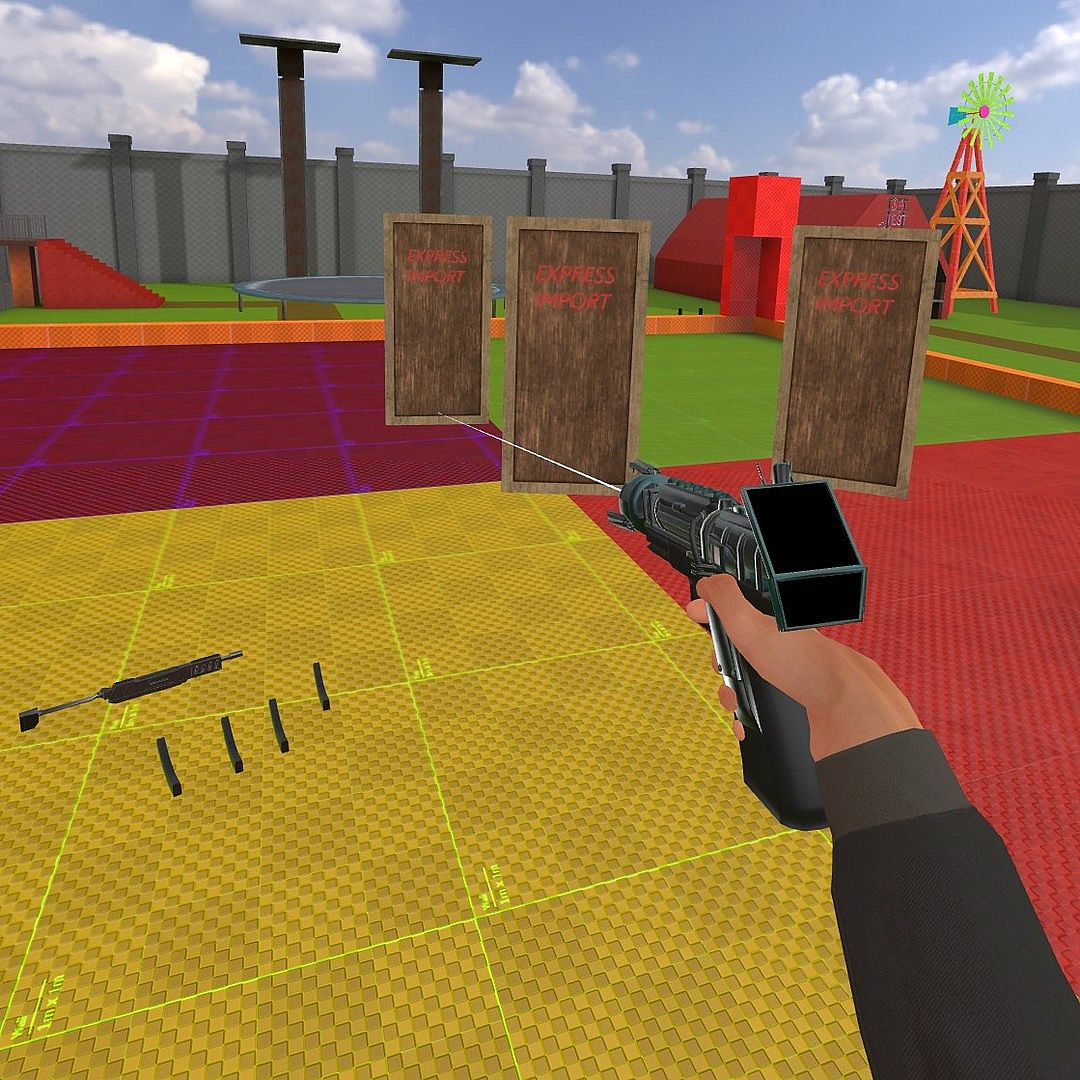 Use the mech gun holstered on your hip to spawn in various types of physical objects, all networked and interactable for you to experiment with.