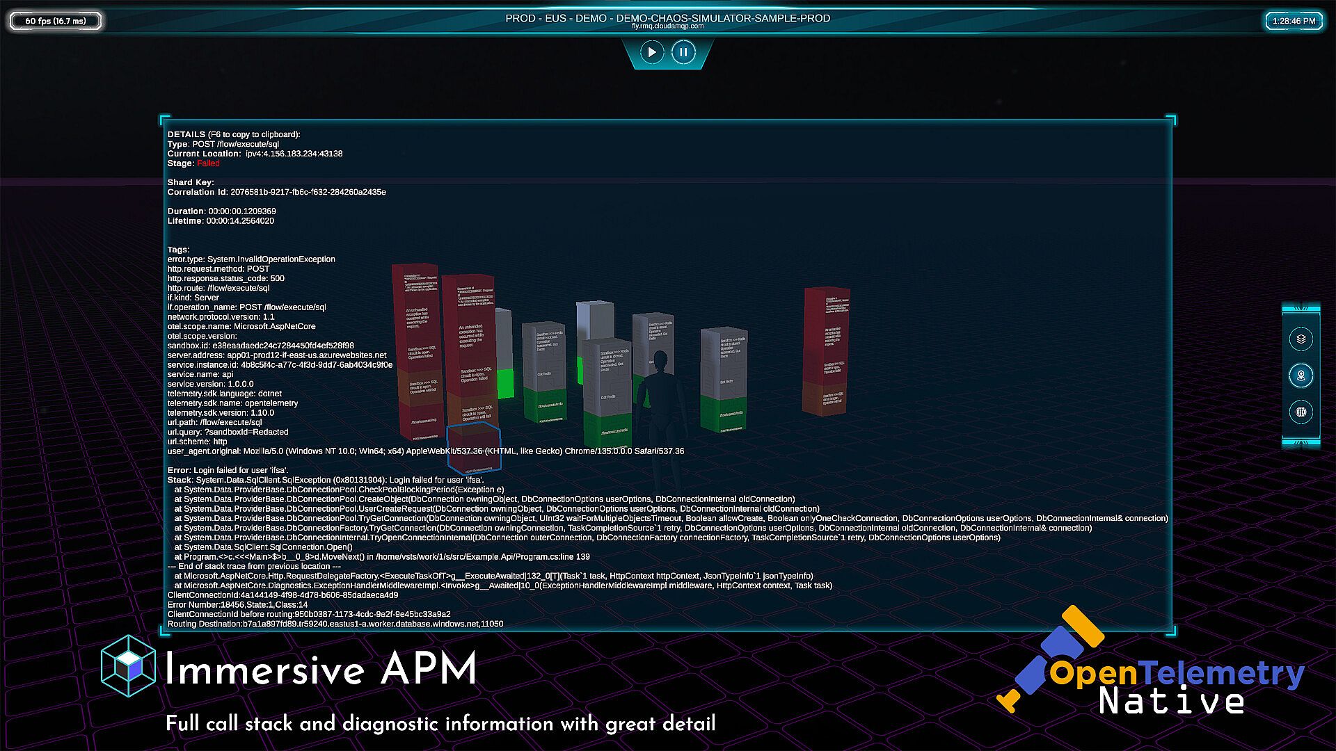 Immersive APM, developed by Immersive Fusion, is an innovative Application Performance Monitoring (APM) solution that transforms how engineers monitor and manage software applications. Unlike traditional APM tools that rely heavily on log analysis or two-dimensional dashboards, Immersive APM leverages advanced web, 3D, and Virtual Reality (VR) technologies to provide a fully interactive, three-dimensional view of application telemetry in real-time.