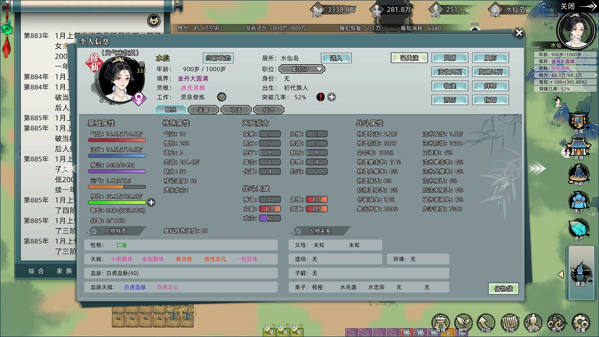 每个人都将有父母,道侣,弟子,师尊,宗门,家族,好友等设定,还原修真世界的人情关系和事件(需要持续迭代)