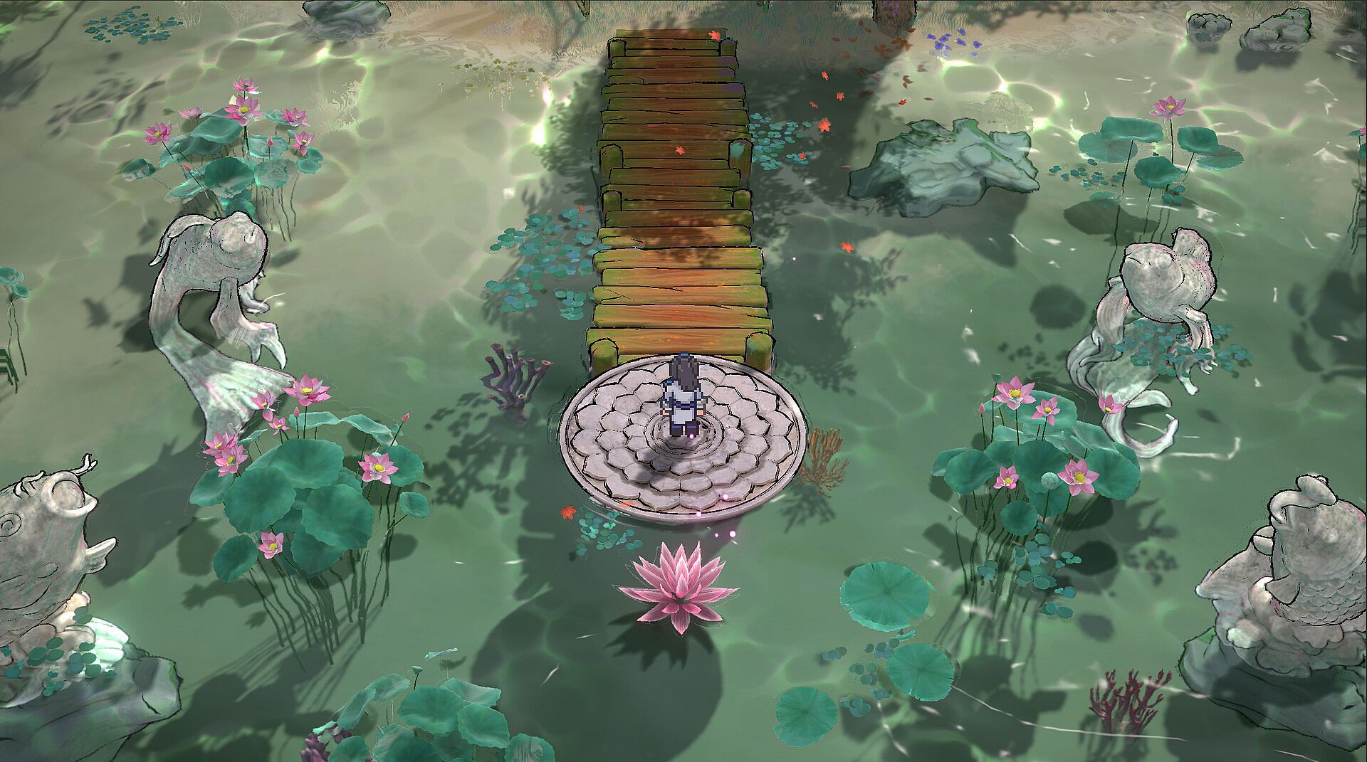 set against fully 3D environments rendered with ink-wash inspired shaders.
